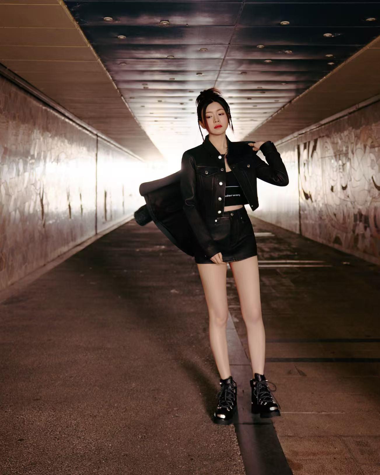 品牌活动惊艳亮相!黑色短套装裹出好身材,甜笑与酷气场形成反差,辣妹范儿直接拉满!