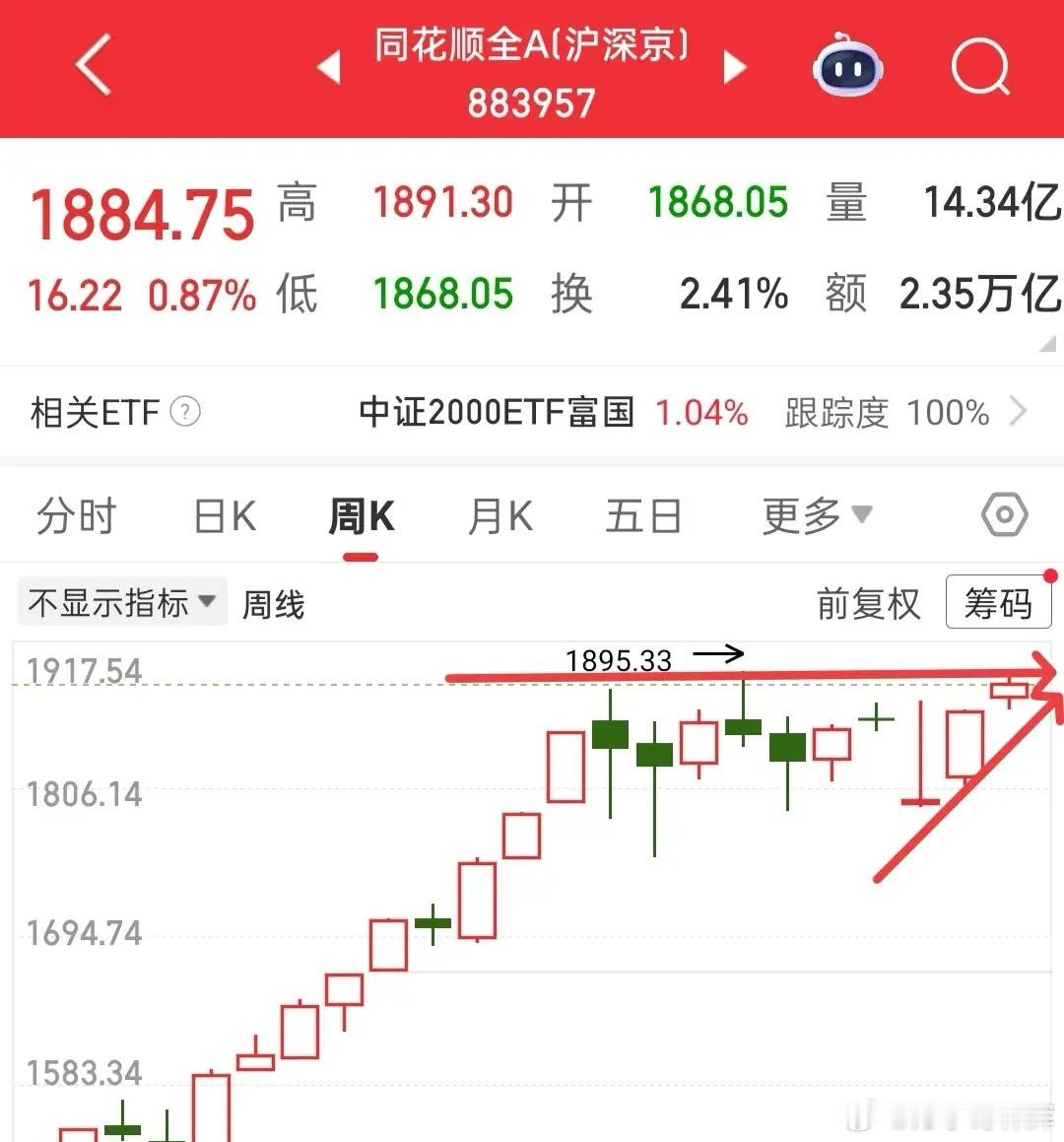 那么很明显,接下来就是做题材的时候,同花顺全A下周应该是不错的,现在唯有全A性价比最高了吧,因为它还没有创新高,并且它是最先回踩60日线的!那么首先要被砸的大概就是创业板,创业板应该要先于大盘回踩60日线!