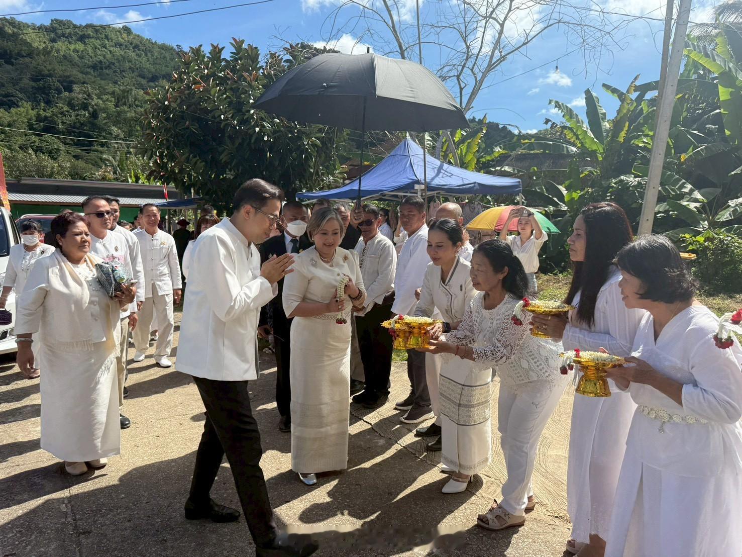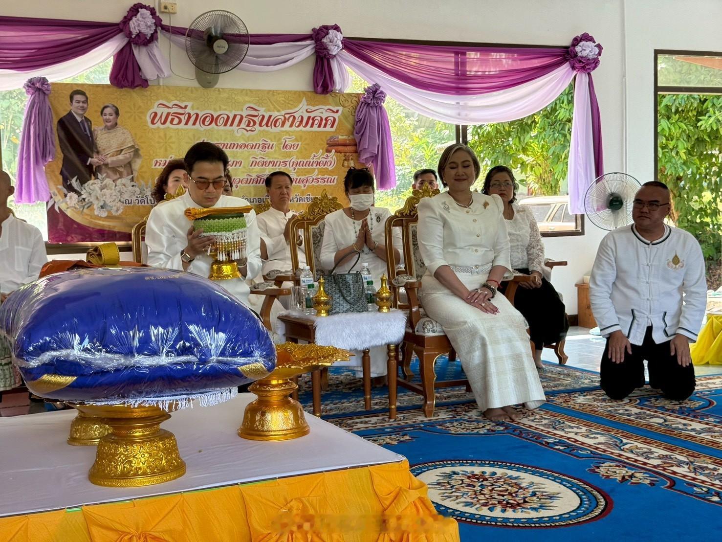 王室[超话]王室泰国王室 莎莉两口子在清莱府送佛衣,这次摆上了颂妃和帕公主母女两人的画像,是代表她们母女捐的?