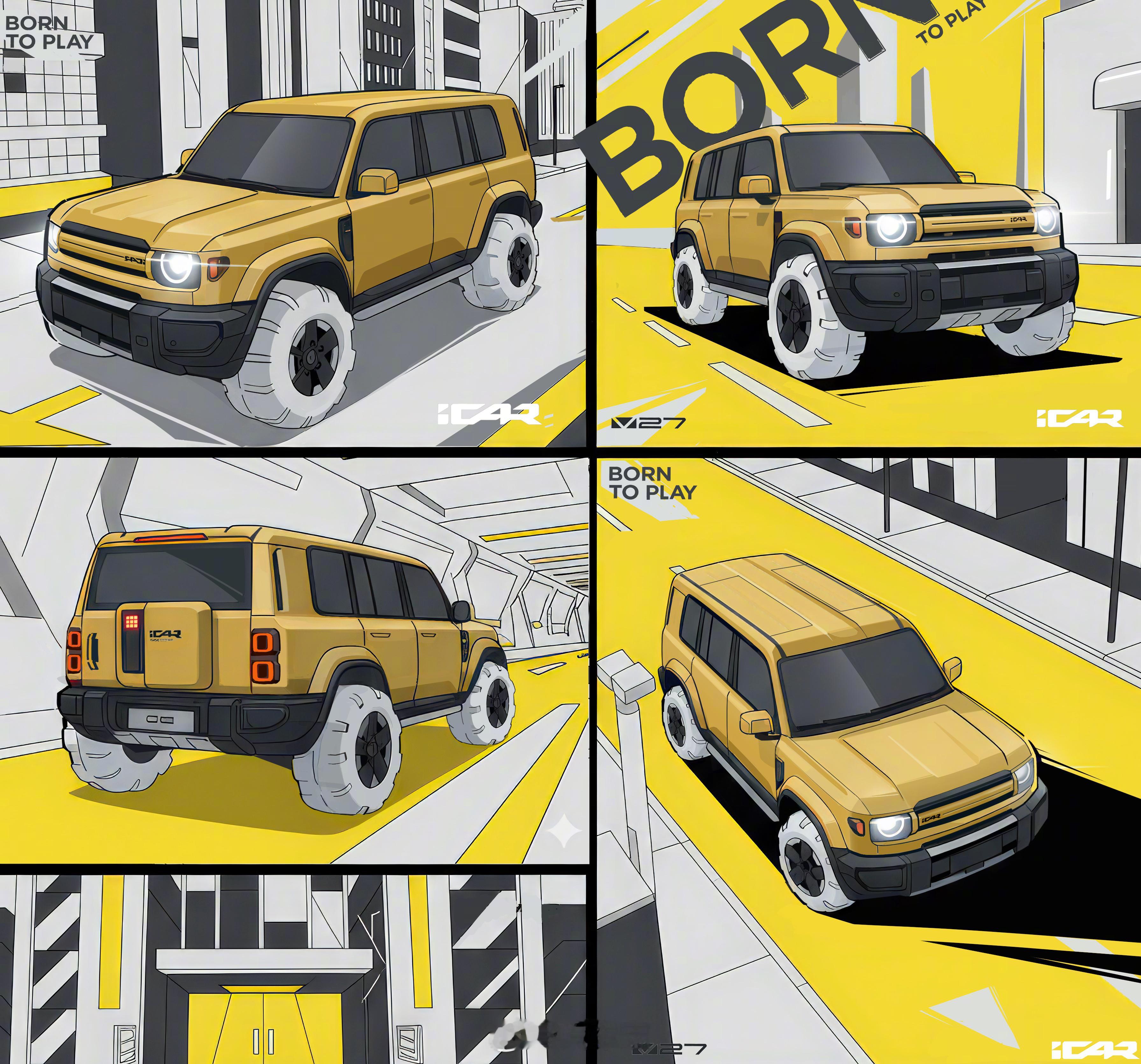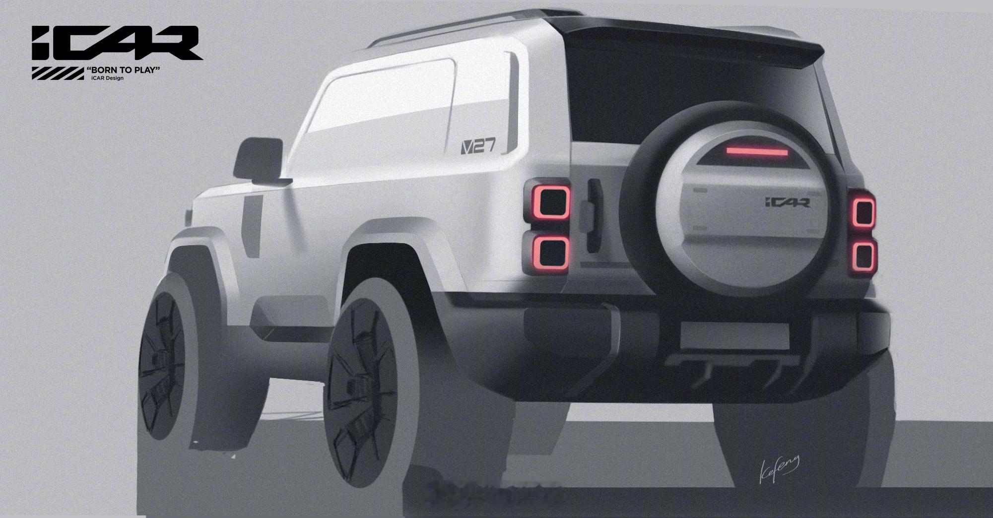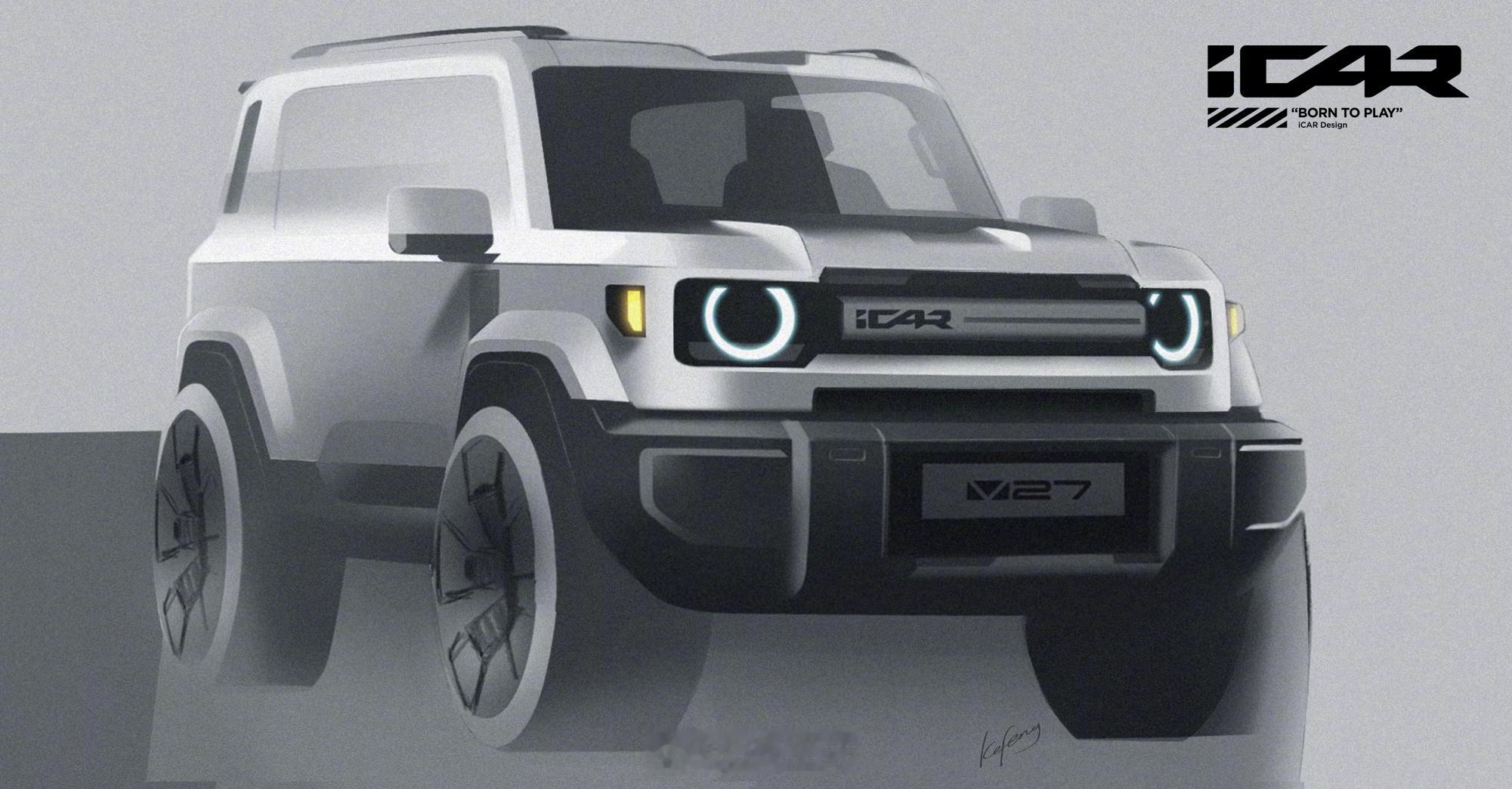 颜值即正义!iCar V27的渲染图很帅~期待着看这台方盒子的实车,“年轻人的第一台卫士”[doge][doge]