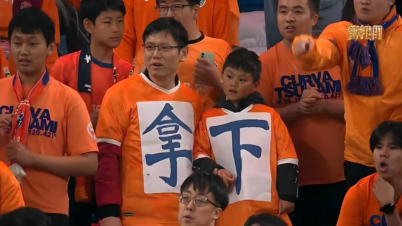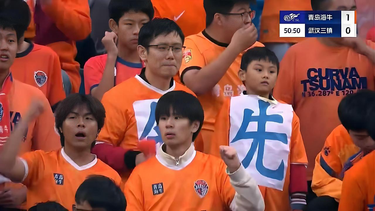 拿下!注意到看台上那一对父子了吗?如其所愿:最终青岛海牛1:0拿下。 这一对父与子比赛中先是胸前粘着“争”和“先”,临近结束时,忽然换成了“拿下”。这场球对于青岛海牛队保级确实太重要了,对于青岛这座城和青岛球迷实在宝贵。 拿下武汉三镇后,青岛海牛积24分,暂时脱离降级区。拿到保级的3分,遂了这对父子的愿望,也惹得看台上的一群大男人红了眼眶。 此情此景,不知道足球从业者看到作何感想?青岛海牛的全体将士应该拼下最后一场,用胜利把球队留在中超。为了这座城市,为了这些球迷!