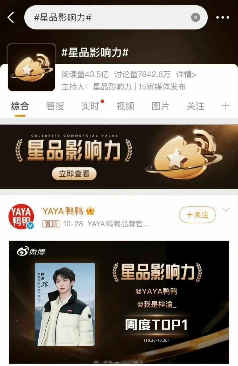 梓渝被星品影响力置顶了,这是认可他的粉丝实力吧[憧憬]