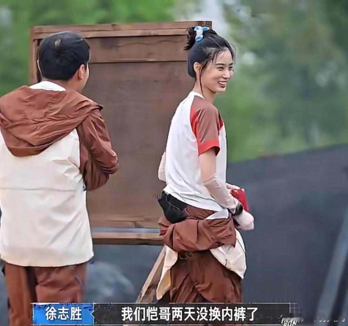 徐志胜对徐艺洋说:“郑恺2天没有换内裤了,袜子也穿了2天了,还2天没刷牙。”徐艺洋尴尬的说:“这个你跟苗苗姐说啊。”郑恺在一旁听了直接“社死”了,只能尴尬的笑了笑。
