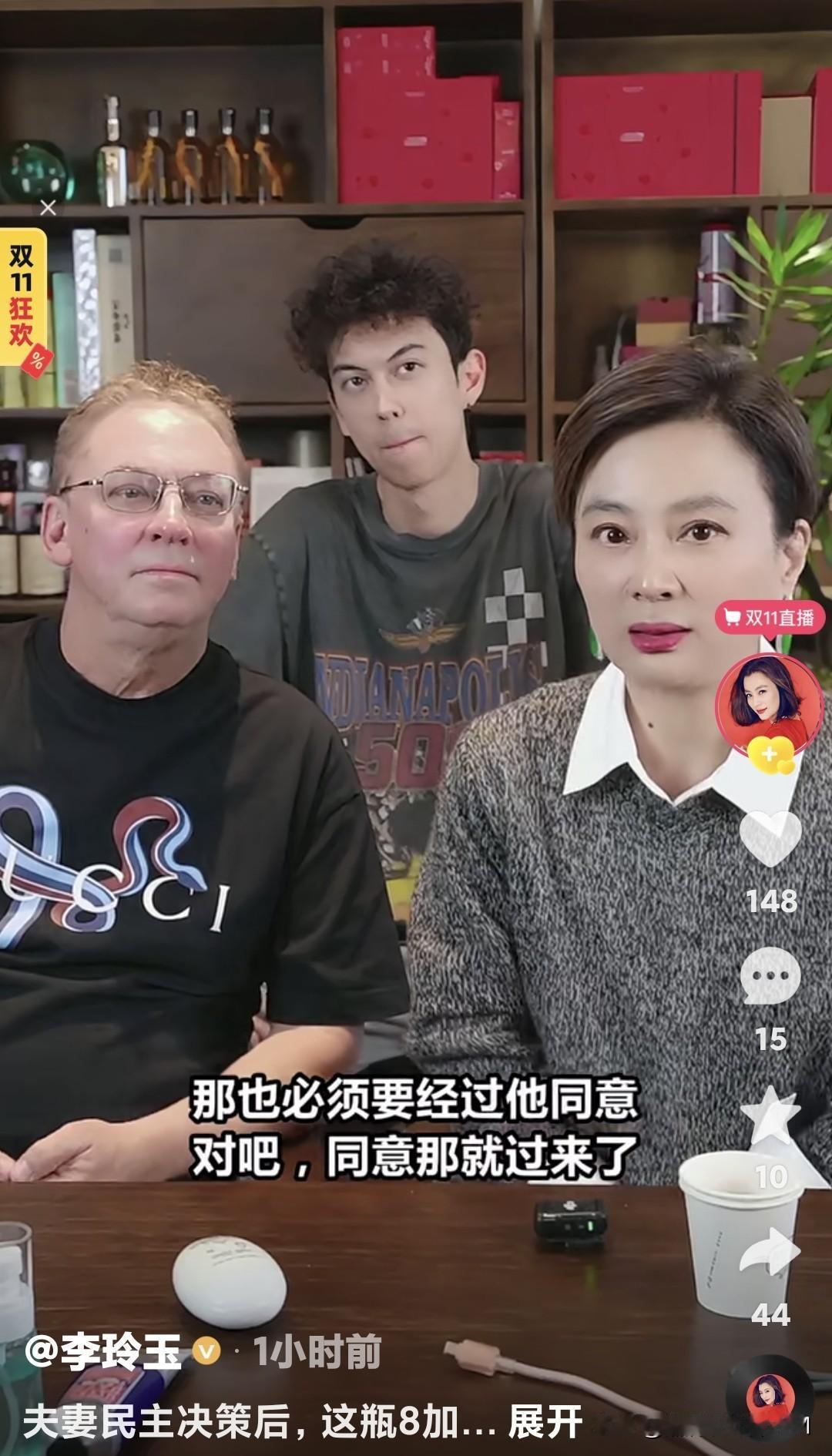 李玲玉一家三口惊现直播间,成功打脸离婚谣言!没想到,这对跨国婚姻20多年来依旧情比金坚,而且不查不知道,一查吓一跳,这老外不仅是投资公司总裁,竟还是加拿大犹太裔富豪,虽比她大了6岁还是二婚,但挺知道疼人的,2019年为了支持重返舞台的李玲玉,毅然将公司总部迁到了北京,如今一家三口在国内生活其乐融融,太过温馨又幸福! 看这一家三口直播时,李玲玉说:“我得经过他同意来我直播间,结果同意了哪就过来了。”外国老公还用中文同大家亲切打招呼,好有喜感,一看李玲玉平日里就没少教他说国语啊!更没想到,26岁的混血儿子杰西也难得露面了,发现阳光帅气的他,这深邃立体的五官长得更像妈,看来中国人的基因貌似更强大啊!只是没选择进娱乐圈发展,也是可惜了!