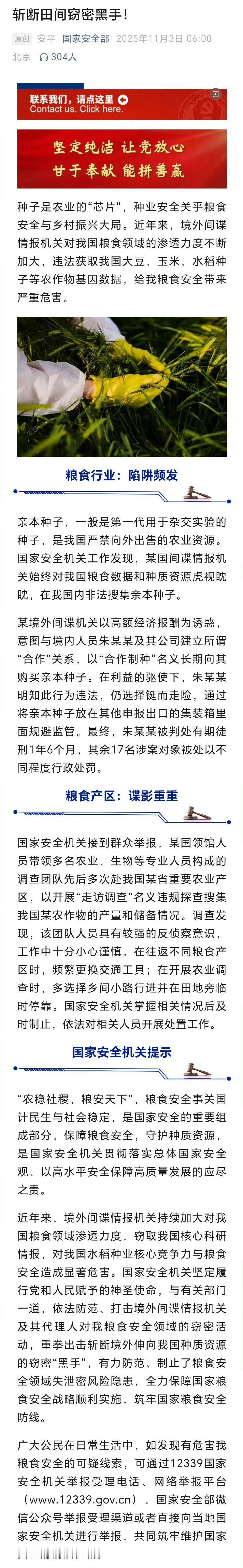 不是日本就是美国,大概率是日本[doge]间谍加大对我国粮食领域渗透