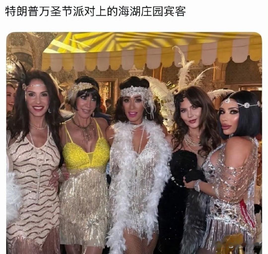 难怪老川会谈之后急匆匆往回跑,原来是家里有攒劲的活动啊,万圣节,别的地方都画成鬼,老川的派对怎么不画成鬼呢,因为画成鬼不利于上演攒劲的节目呗…… 服了老川了,这体力非常人可比,坐着大飞机,跑到地球这一边急匆匆地见了多位大人物,本来这就是挺累的事儿,要是我,回家之后得大睡三天才能缓过来。 可是老川,刚一到家,就来了精神,弄一帮穿成这样的女宾客,真会玩!