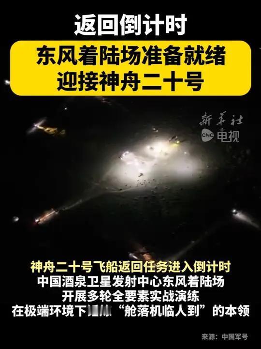 神舟二十号飞船返回任务进入倒计时,空中搜救、地面处置、通信保障、医监医救等系统全