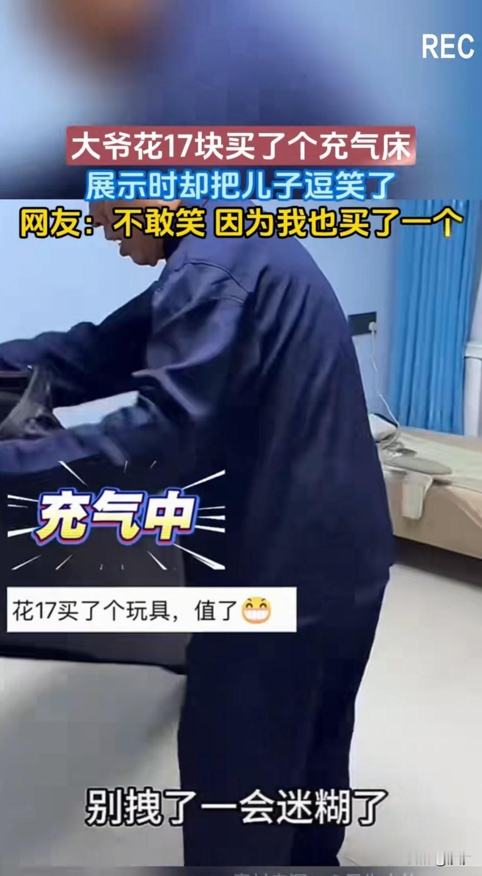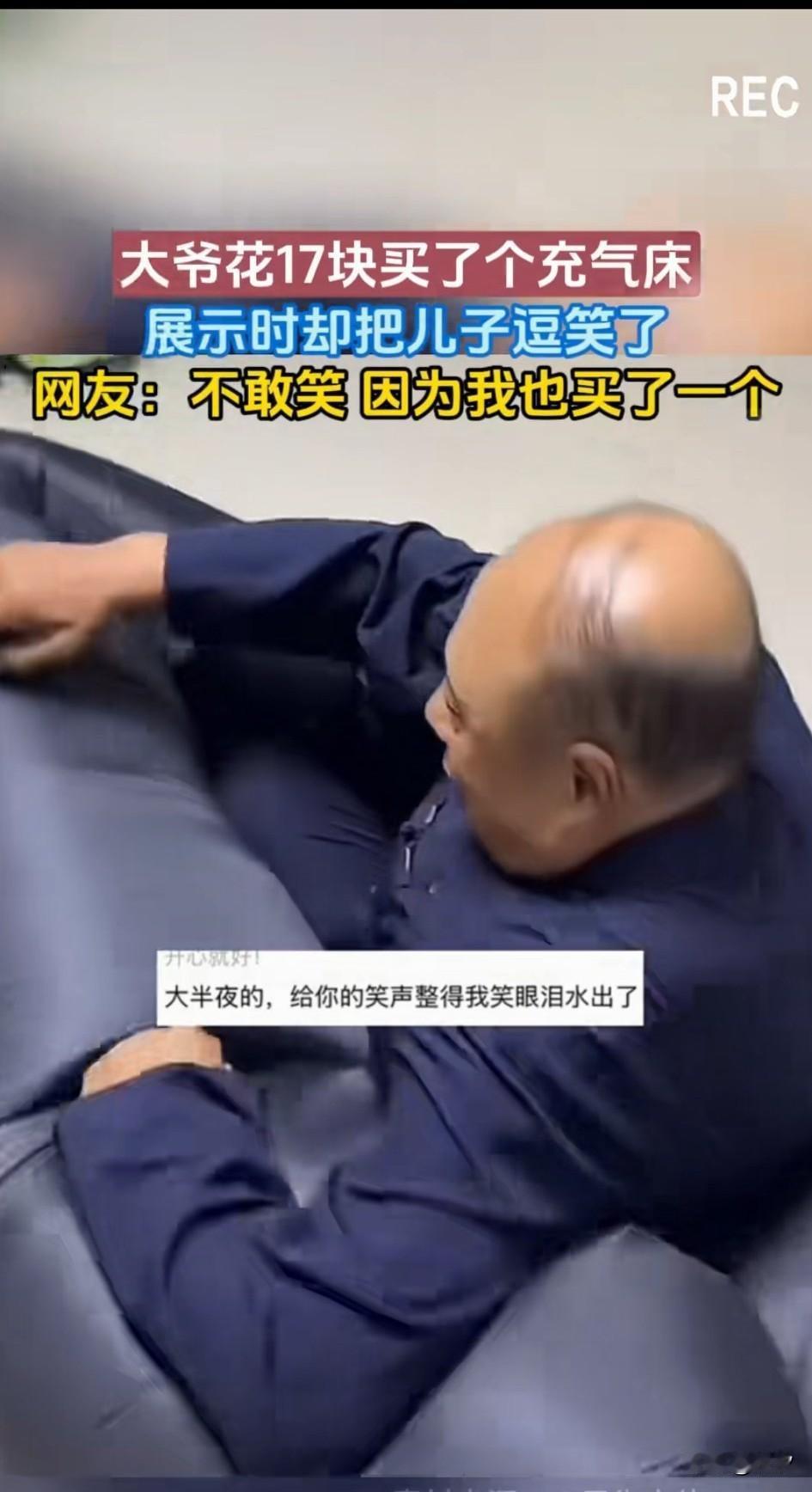 大爷学会网购后就乐此不疲, 这回又买了一个充气床, 只花了17块钱, 觉得的自己