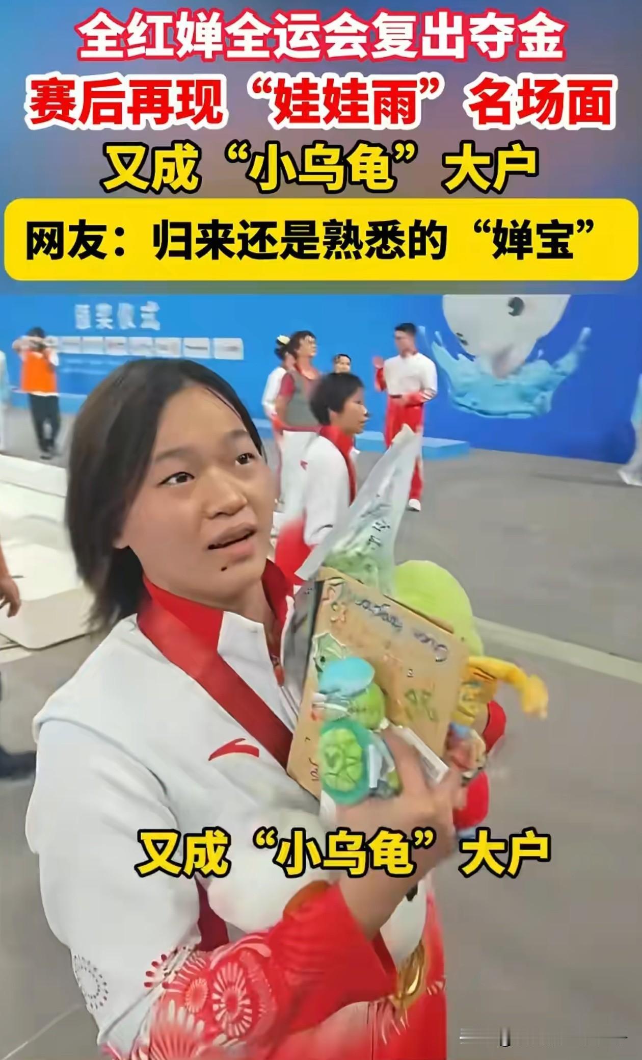 终于明白大家为何喜欢全红婵,不仅是因为她拿了金牌,而是她成名以后,也没丢掉那份朴实和真诚,现场粉丝丢给她的公仔,她一个不落的全部捡起来,并挥手鞠躬向粉丝表示感谢。 她之所以捡起这些娃娃,并不是因为有多喜欢,她要是想买随时能买一堆,是因为她尊重他们,这不是所有普通家庭成名以后都能做到的,她还是我们熟悉的那个婵宝。 为什么大家喜欢全红婵,因为她是普通家庭的孩子,而我们大多数也是,没人托举,能走到现在的现在太不易了。 她夺冠了,大家高兴了就挺好,万一哪一天她没有夺冠,也希望大家都能够嘴下留情,不要去喷她!