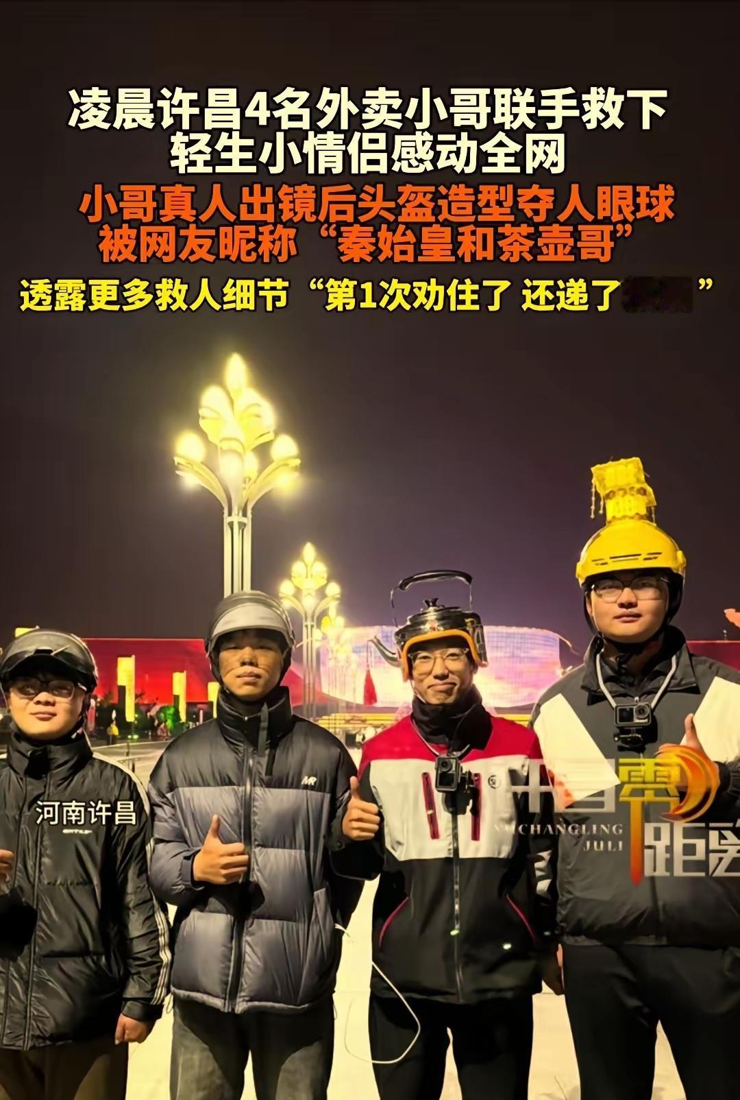 练完深蹲在休息区喝水解渴,随手刷手机就刷到了 4 名美团骑手救人的新闻,越看越觉得心里暖烘烘的。凌晨的河南许昌天多冷啊,他们在桥边等单,本来是闲着歇口气,结果瞥见一对情侣吵得越来越凶,男方都光膀子往河边凑,立马就警觉了。 几个人喊着 “弄啥嘞”,跟百米冲刺似的冲过去把人拉住,还不忘把外卖车开上双闪挡在马路中间,怕女方情绪激动跑车流里。都是 20 出头的小伙子,平时跑单练得腿脚利索,关键时候还这么热心,说 “以后碰到还会帮”,这份不掺假的仗义挺难得。 后来看到美团给他们评了 “先锋骑手”,还发了现金奖励,挺欣慰的。咱们去健身房是练体魄,他们这是把一股子冲劲用在了帮人上,比单纯练肌肉更有意义。这份勇敢没被埋没,还得到了实实在在的肯定,真挺值得让人记着这份正能量~