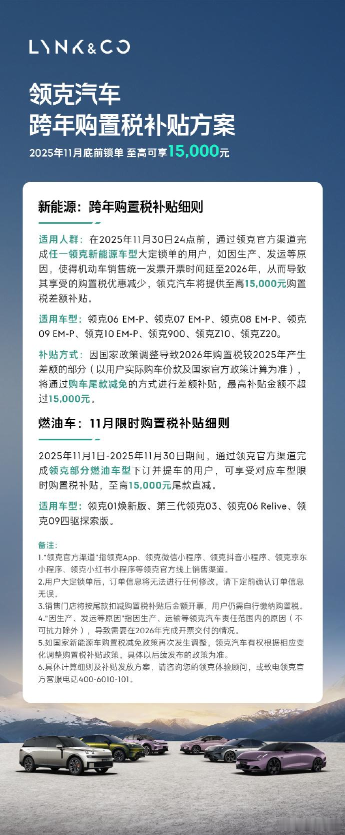 领克也官宣全系车型购置税补贴兜底