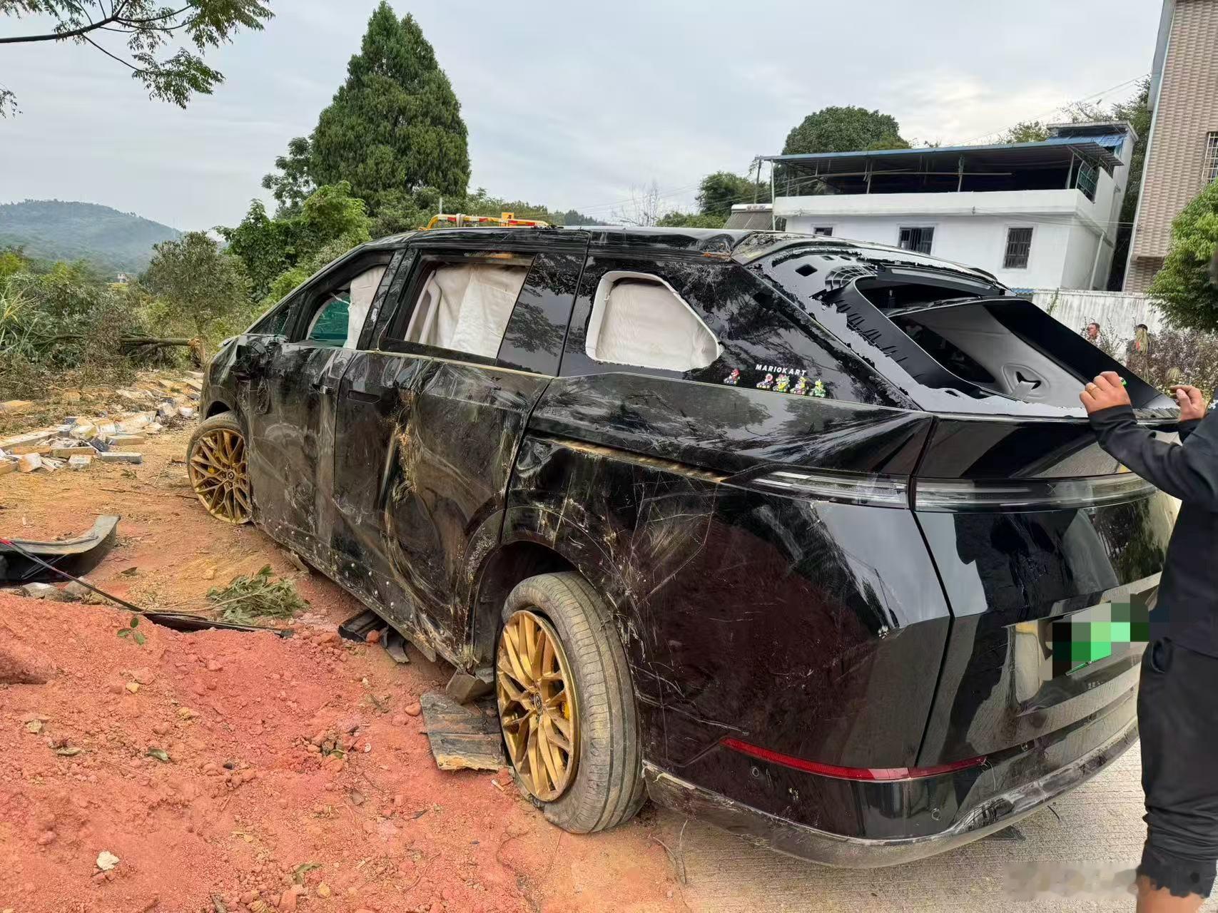 好家伙,这台小鹏X9翻成这个样子,看起来起码滚了一圈,车身结构都没有啥事,车主还在拍照,够硬!