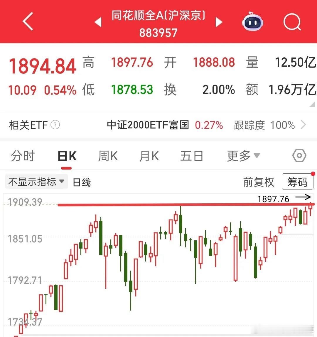 今天全A已经成功突破左侧高点,创下了历史新高!从全A日线图来看,应该是一个鹅头形态,鹅头形态和老鸭头形态是不一样的,老鸭头需要回调几天才能形成,鹅头形态只需要短暂震荡就能继续新高!