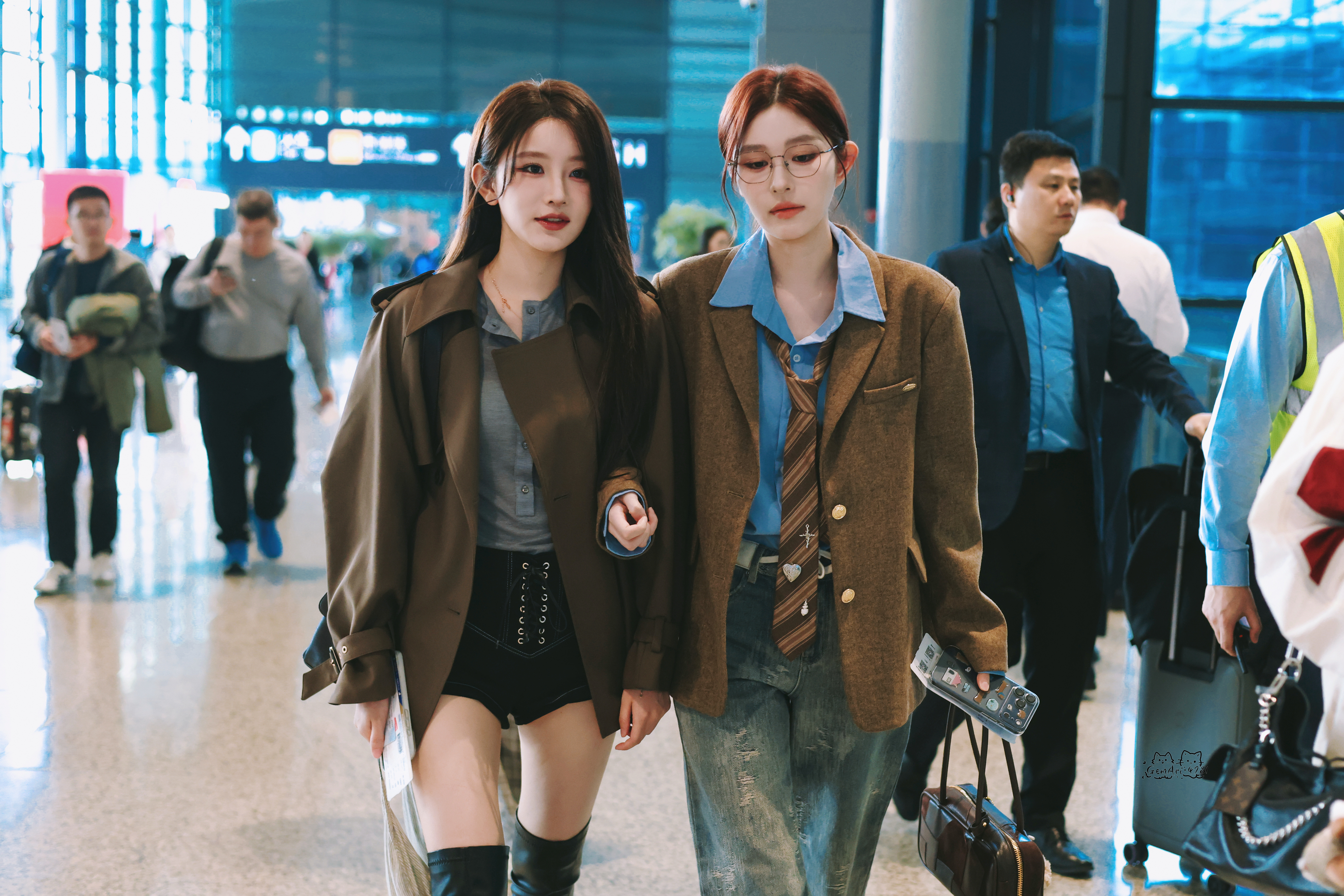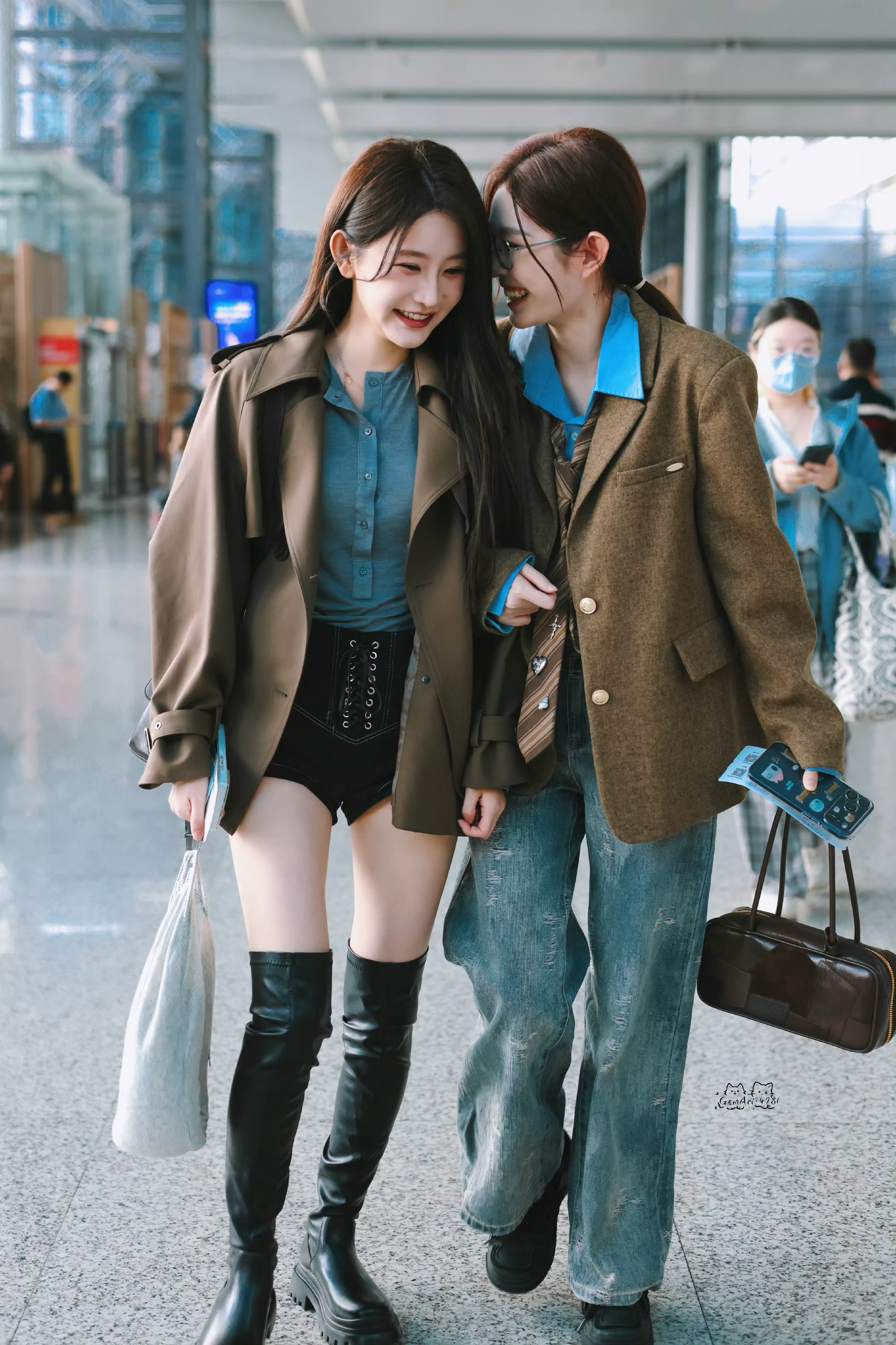 诗情画奕机场情侣装好久不见的王奕、周诗雨机场秀,还是情侣装
