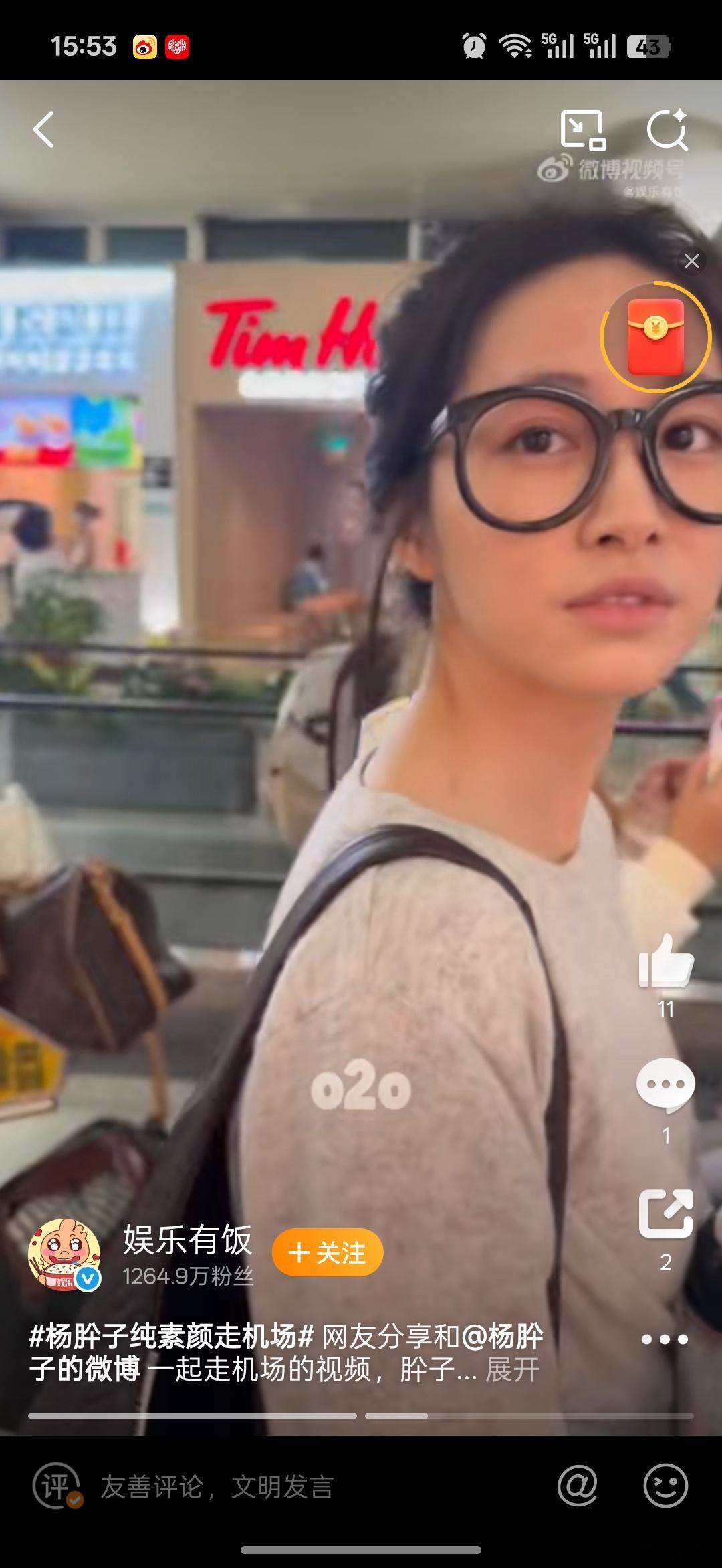 杨肸子纯素颜走机场