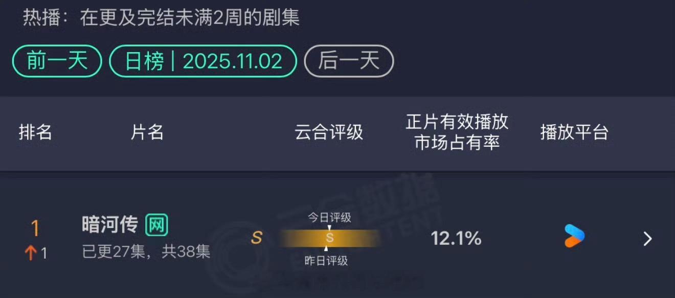 龚俊暗河传,灯塔酷云云合V榜,四榜登顶🎉​​​