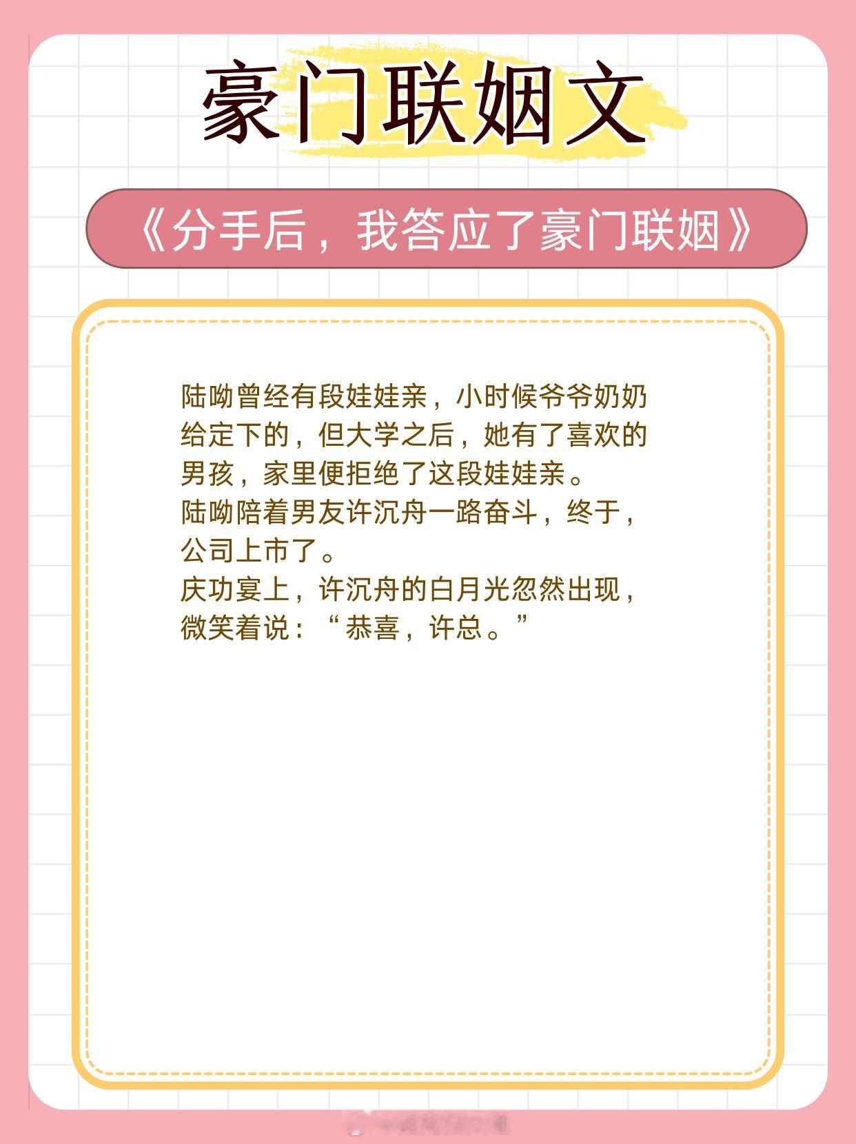 6、《分手后,我答应了豪门联姻》作者:春风榴火