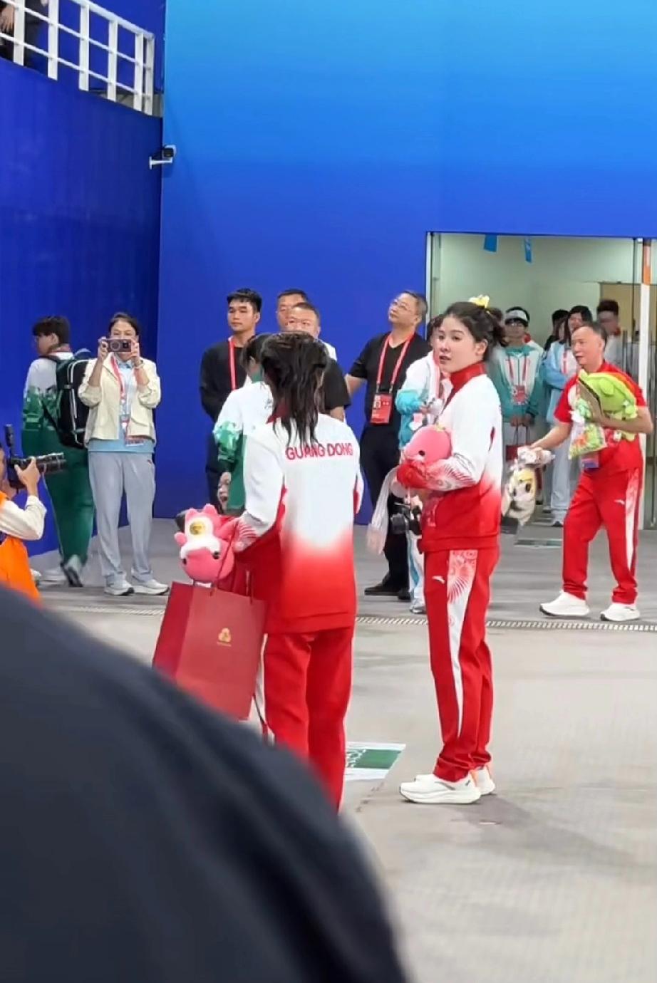 全红婵的教练真的很护着她,昨天她在的广东队夺冠了。 有很多网友给她送小乌龟以及其他的小娃娃,她在前面接娃娃,她的教练却像老父亲一样,在她的身后抱着各种娃娃,非常的宠爱。 全红婵应该是教练最得意的弟子了吧!换做是我,我也很开心!最关键是教练也很好,从各种细节可以看得出来,非常照顾她。 在另一个视频看到全红婵身上应该有伤之类的,教练会帮她捏肩膀,就像家人一样,非常的亲近。 18岁的全红婵长大了很多,感觉她比以前更懂事了。 希望她一直保持这样的性格,以后还会拿更多更好的成绩展现给喜欢她的网友![大金牙]王伟莹谈跟全红婵培养默契 全红婵