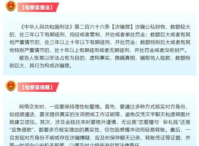 【3年转账1200万元才知女友竟是男的,内蒙古一男子被判刑】网络那端的“她”,嘘寒问暖、情意绵绵,当事人以为的甜蜜爱情,或许只是一场处心积虑的陷阱。近日,赤峰市元宝山区人民检察院办理一起诈骗案,一男子假扮“女友”通过微信聊天的方式骗取被害人钱财上千万元,被法院以诈骗罪依法判处刑罚。(编辑:少杰 审核:安达