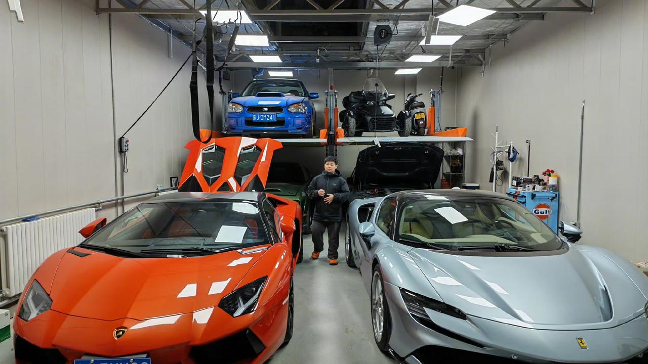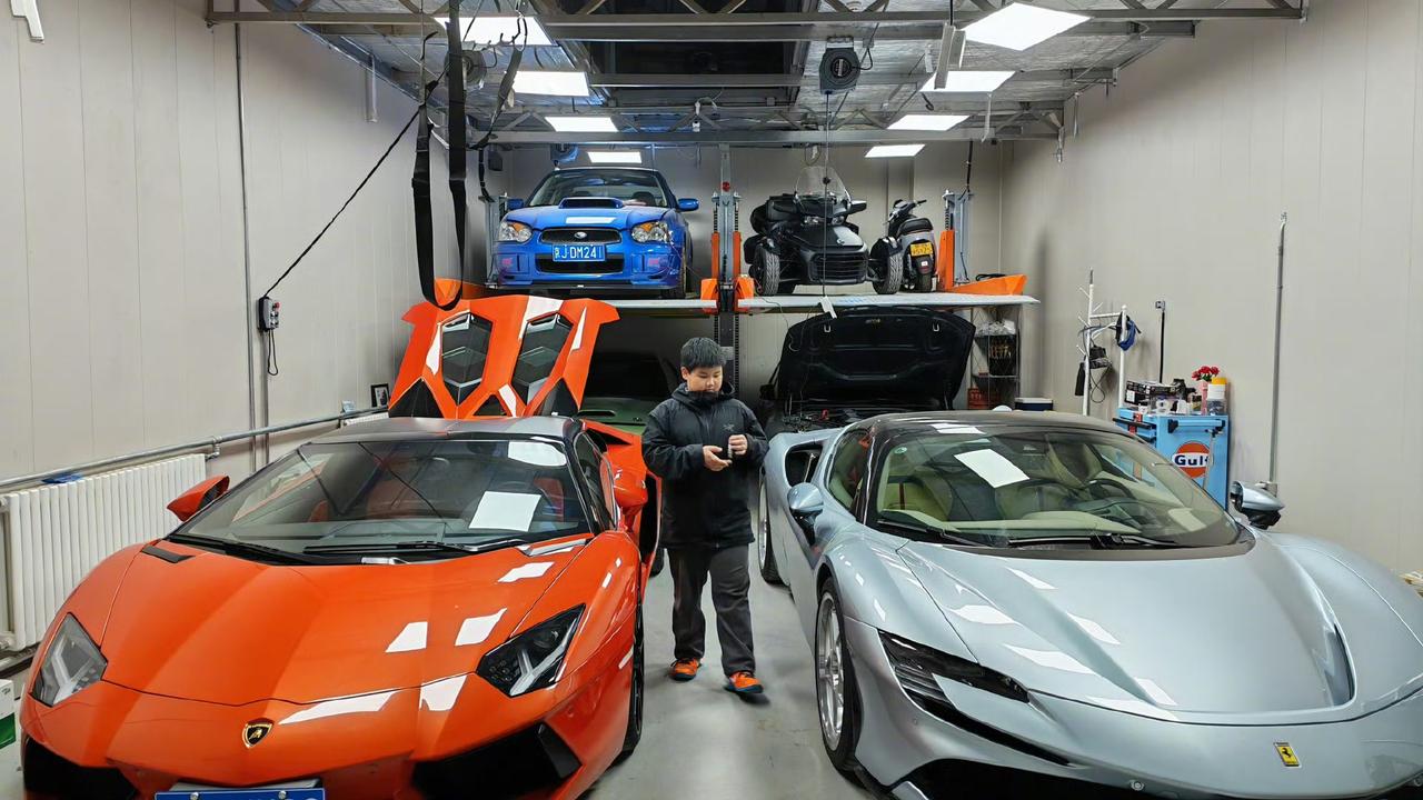 陈震:儿子又来车库视察了~[允悲]  陈震同学的这个车库唯一的不好就是停车位太少了,他的车放不下,所以有两辆车得架起来放在上面。 车都是非常好的车,特别是前面两辆,一辆是大牛,一辆是法拉利。做顶尖车评人的收入就是高,能够支撑起玩这么贵的车型。 各位是怎么看的?欢迎评论区留言。