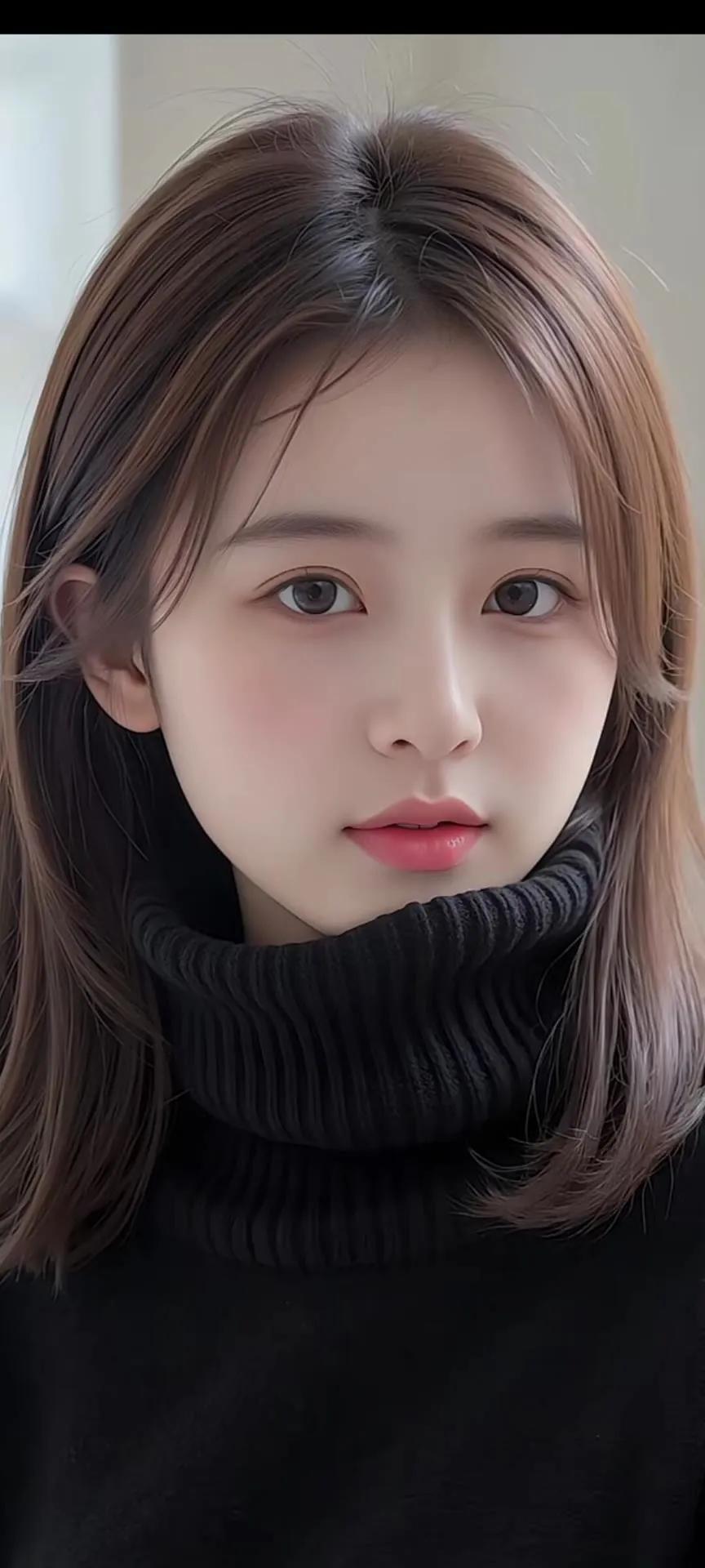 温柔甜美的少女,黑发红唇,气质动人。街拍 高清美女