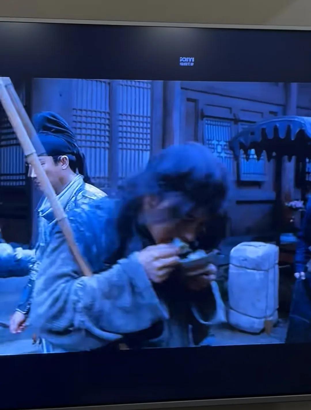 导演竟然用了最明显的笑场,主角身后有一个控制不住笑的群演,是因为他看见另一个群演把道具菜吃了,差点吐了,他就一直笑个不停。