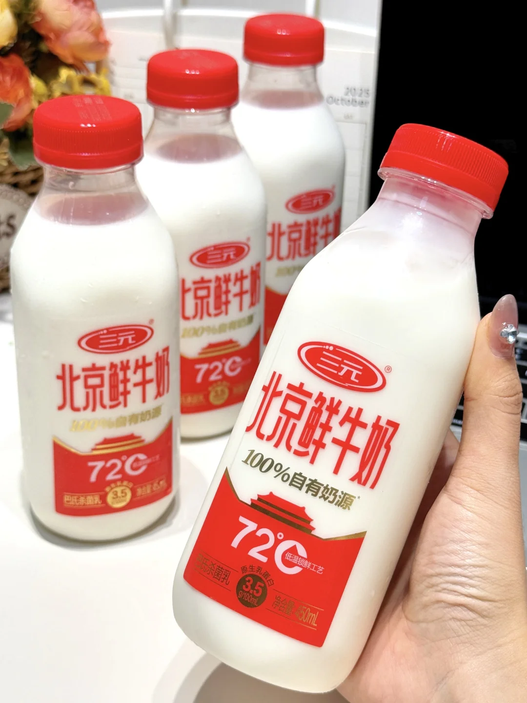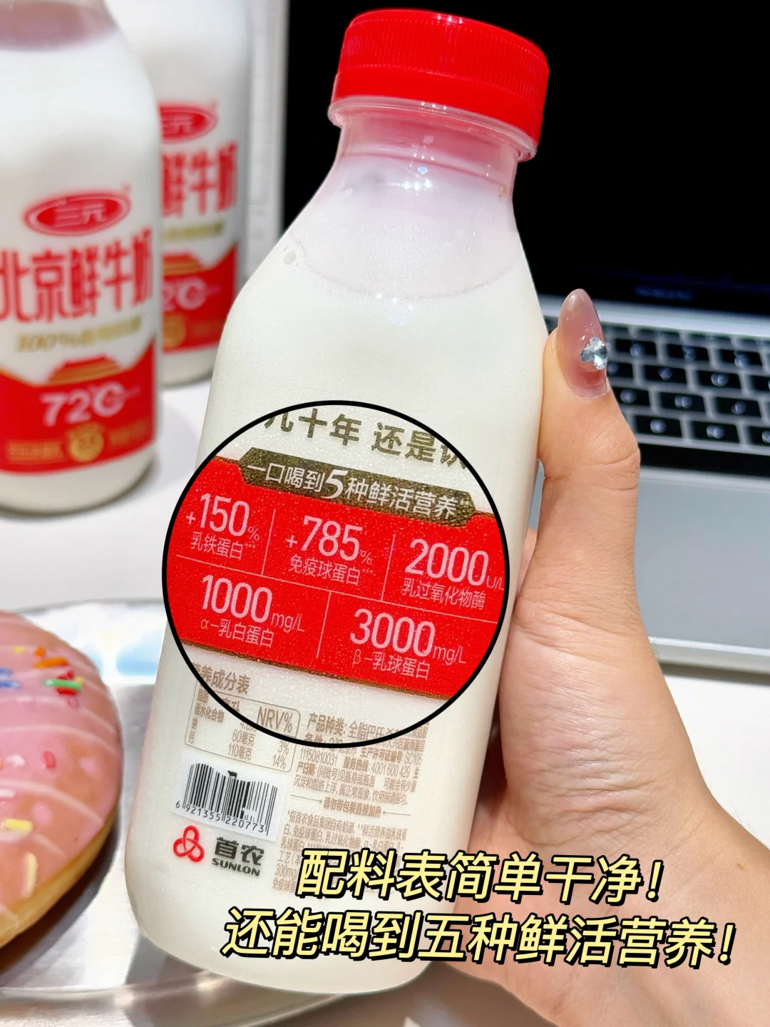 随手买的鲜牛奶!没想到喝了一口就被惊艳住了!! 就是这个三元北京鲜牛奶!不愧是出自北京老品牌的鲜奶! 100%自有牧场奶源!每一口都很新鲜! 每百毫升含3.5g原生乳蛋白! 奶香味超浓郁!口感细腻又丝滑! 回味还能喝到淡淡的清甜~完全没有奶腥味! 而且每一口都能喝到五种鲜活营养! 有乳铁蛋白!免疫球蛋白!乳过氧化物酶!α-乳白蛋白!β-乳球蛋白! 营养又健康! 杀菌工艺也超优秀!72℃低温杀菌工艺! 能保留更多的活性营养物质! 对比三元屋型鲜牛奶的85℃杀菌工艺,三元北京鲜牛奶乳铁蛋白含量多150%、免疫球蛋白含量多785%,喝着更有营养~ 配料表干干净净,只有生牛乳! 营养价值简直是buff叠满!堪称鲜奶届的天花板! 平时配个早餐面包或者当下午茶都非常合适~ 奶娃子们一定要去试试!