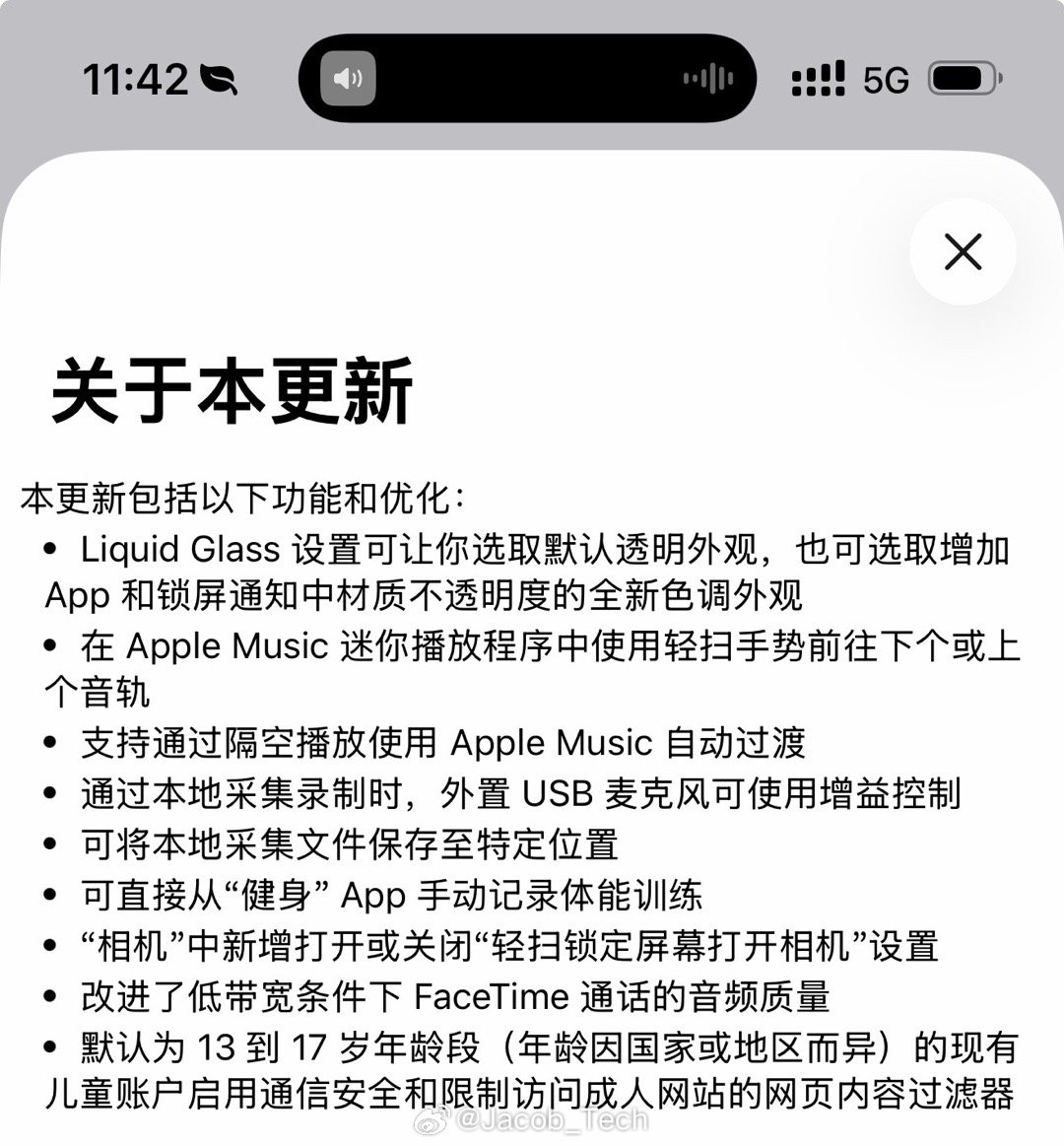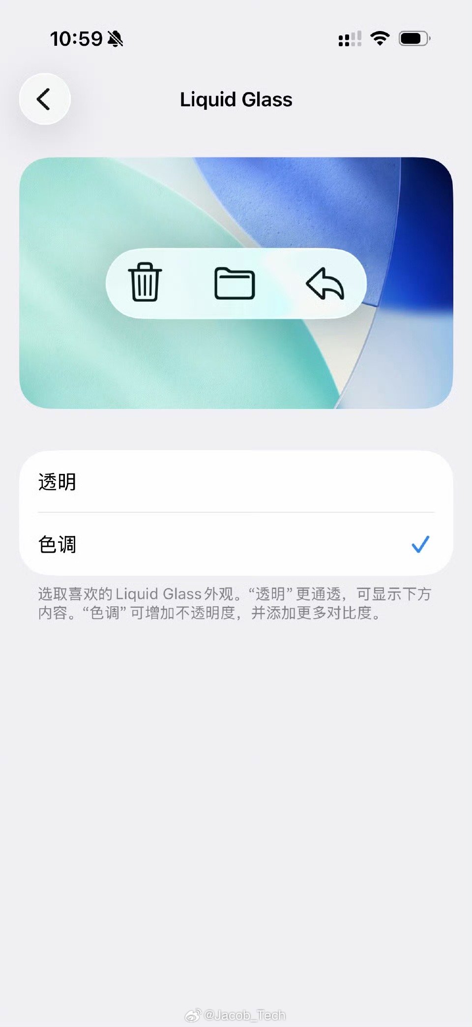 新版本也没什么变化,就是可以把玻璃特效给关了…可是我觉得…这不就又回到了iOS18“了吗…