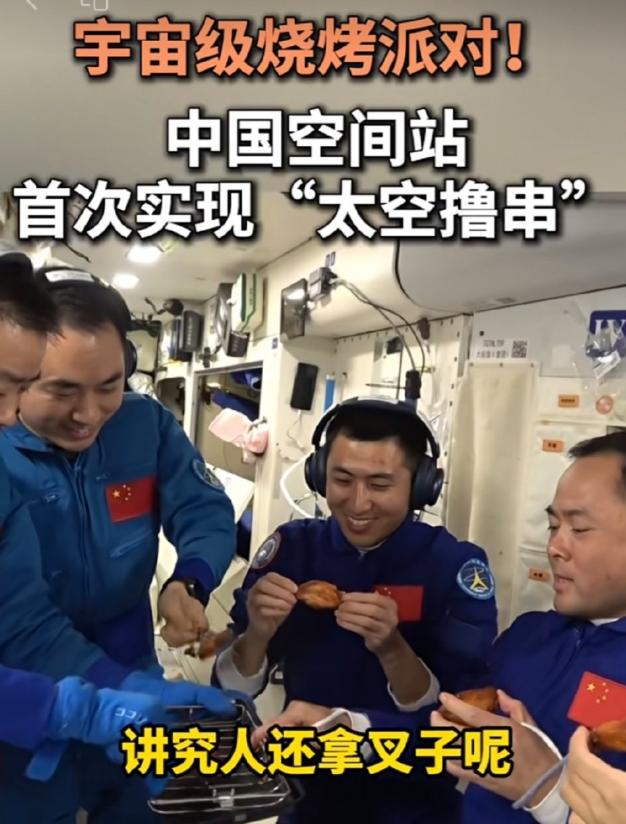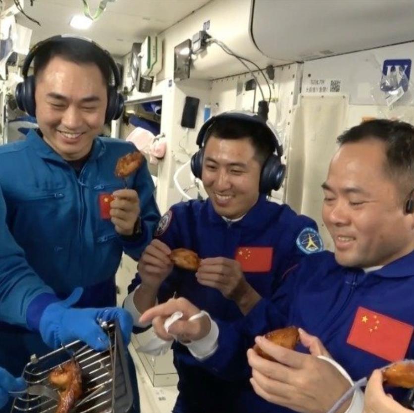 第一次见到航天员如此不顾形象的搞“吃播”,比特朗普在韩国吃的国宴强百倍! 鸡:没白死,上太空了,没想到以这种方式飞升。 你说你们几个吃就吃吧,还开直播,害的地球人都直舔嘴唇。问题是隔壁国际空间站那几位正抱着牙膏似的太空食物也在眼巴巴的看着呢! 三个半小时中国天宫航班,中国美食牛上天,中国科技!中国航天!中国速度!勇闯太空争第一! 中国太空人,在太空,平平常常,轻轻松松,比洋鬼子强一万倍,中华民族伟大复兴的脚步不可阻挡!一定会让世界仰望!