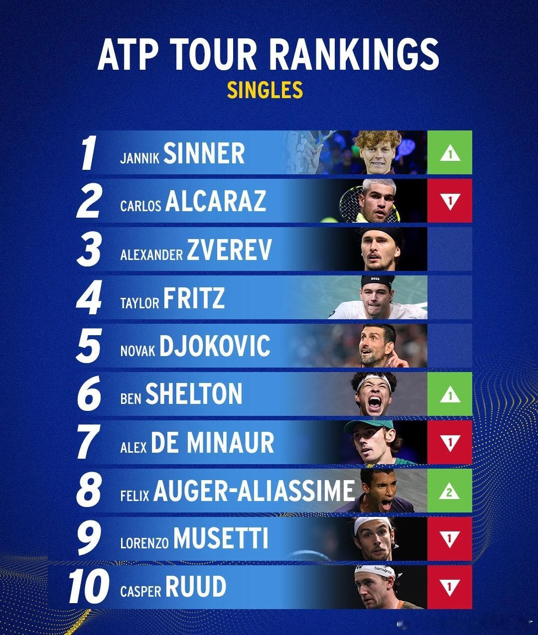 🔵ATP最新世界排名