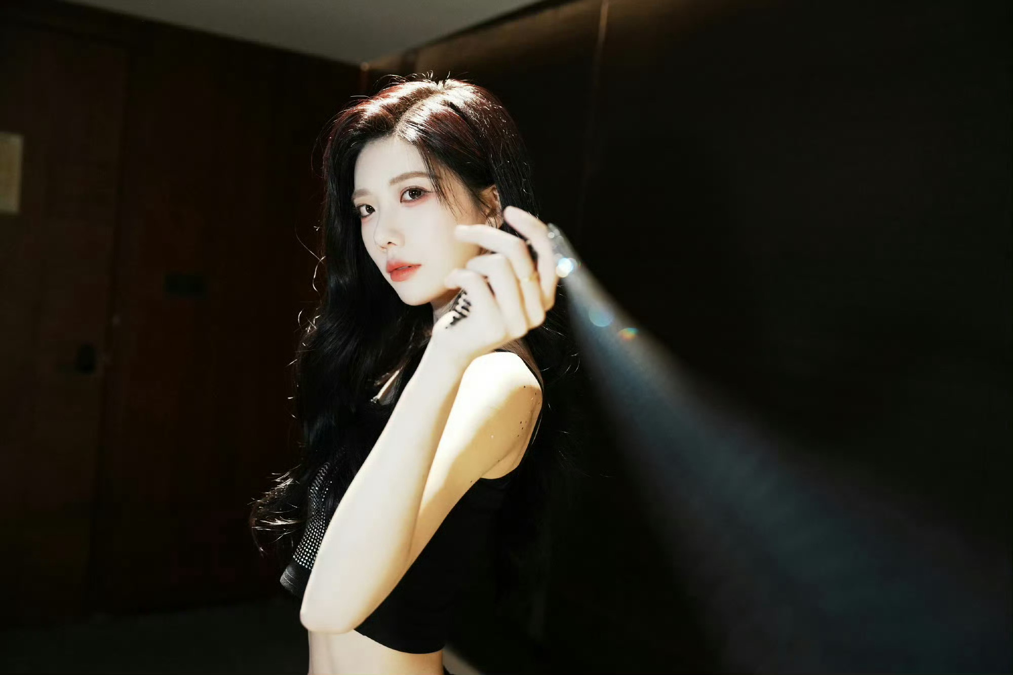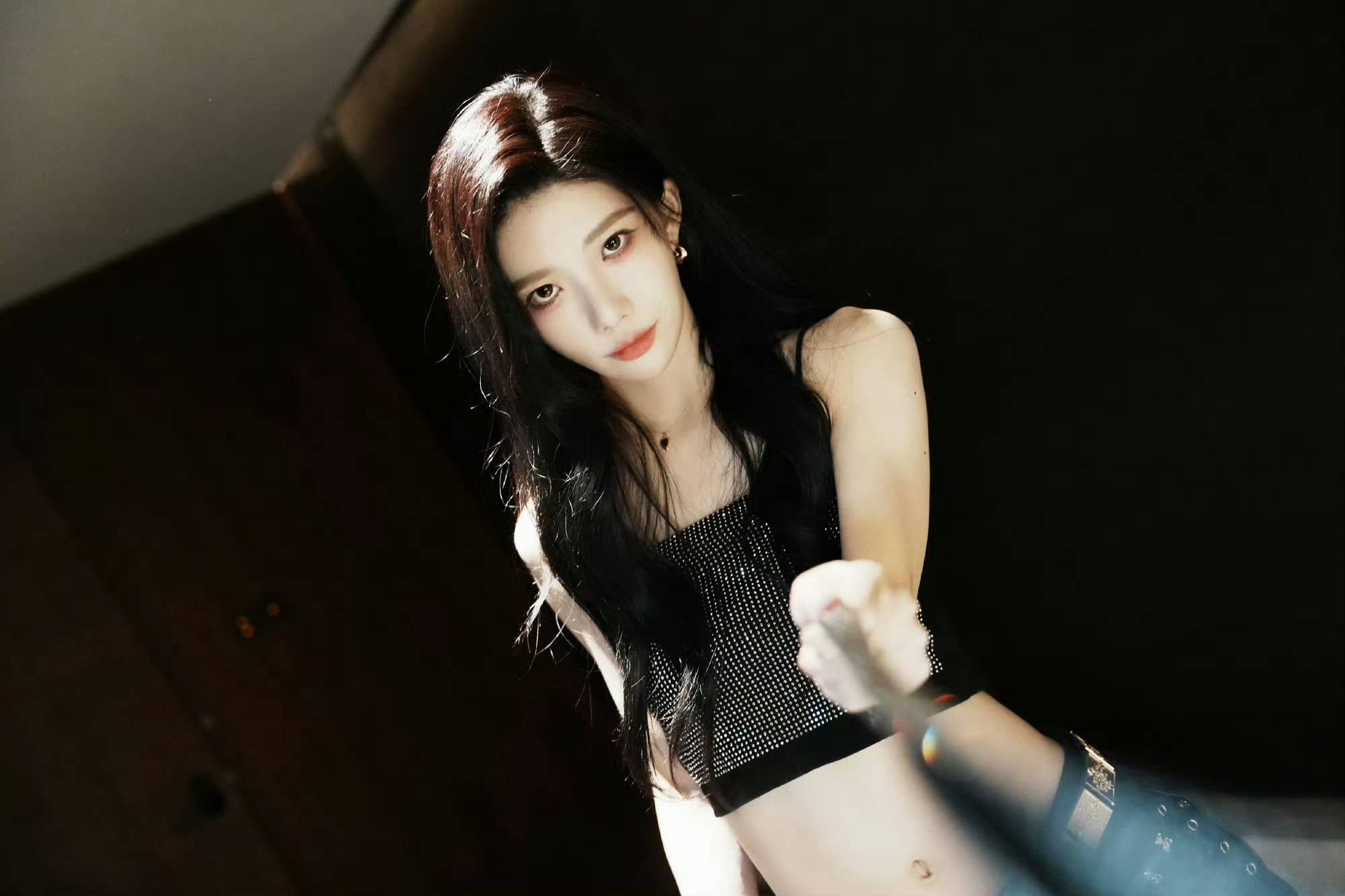 沈梦瑶最新营业送达!黑色吊带露腰杀暴击,姐姐又A又飒,帅到我心巴上了!