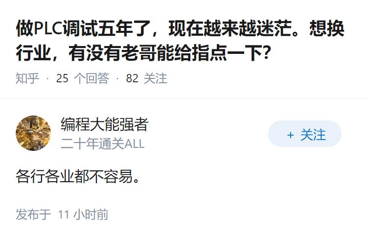 做PLC调试五年了,现在越来越迷茫。想换行业,有没有老哥能给指点一下?