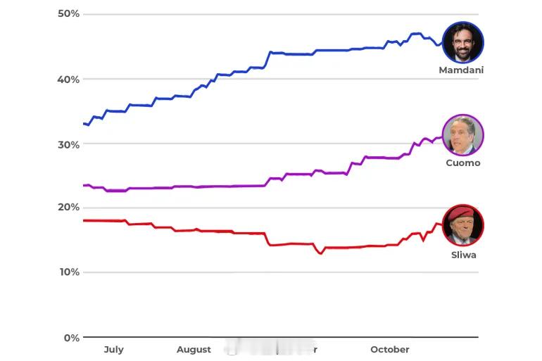 图1显示了纽约市长三个候选人得到的选民支持率。网图