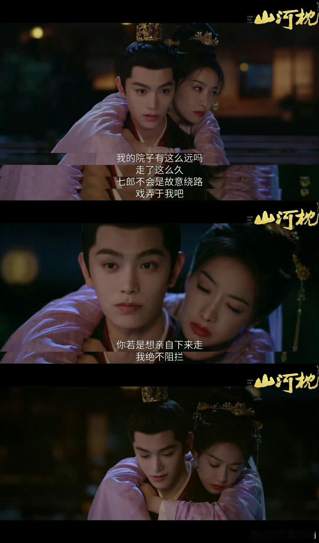 山河枕卫韫楚瑜这进度也太快了吧!一直虐虐虐也该看点甜了,一句“莫非你喜欢我”是两个人的心跳!看预告也马上要成婚了!啊啊啊开磕开磕!山河枕
