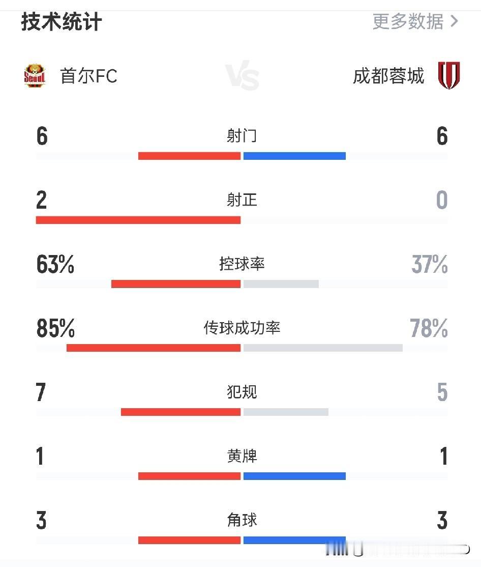 成都蓉城亚冠0:0踢平首尔FC,面对韩国劲旅整体发挥不错,虽然没有赢球,但比赛中费利佩曾打进一球,只是被裁判给判罚犯规在先,这个球确实有争议,个人认为正常的身体对抗,没有犯规。 整场比赛成都蓉城完成6次射门,但很可惜没有射中门框范围内,说明进攻力度还是不太够,面对首尔的防守,中超球队的攻击力还需要大力提升才行。