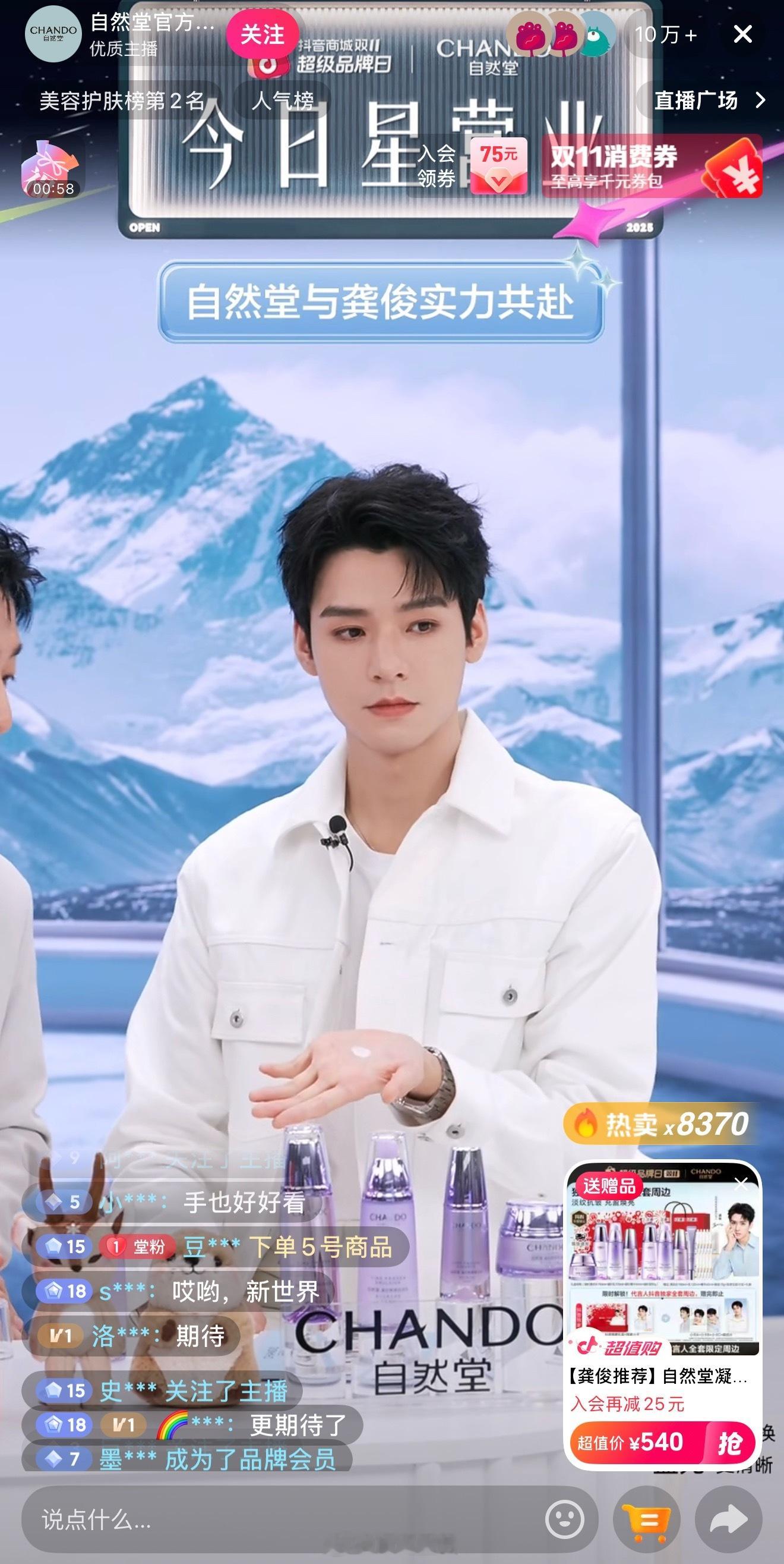龚俊品牌直播人数轻松破10万+,今天依然是清爽干净的大帅哥啊。