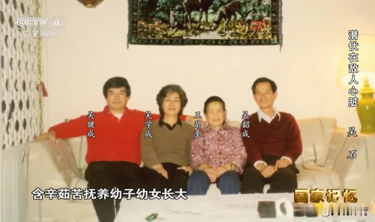 国家记忆:吴石及妻子王碧奎,以及他们的子女——吴韶成、吴兰成(留在大陆的两个子女)以及随父母去台湾的吴学成、吴健成。