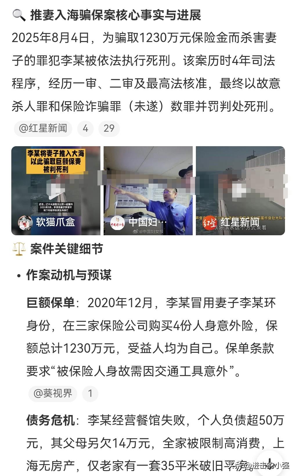 骗保是相当的可恶,为了骗保而杀人的话,那就太愚蠢了。 此前,一男子为了骗1000多万的保险金,竟然将老婆推入海里。 这名男子被认为是为了骗保和这名女子结婚,因为他们并不相配,无论是外貌还是气质上。 这名男子在8月4日被执行死刑。 男子的行为咎由自取,也敲响了警钟。