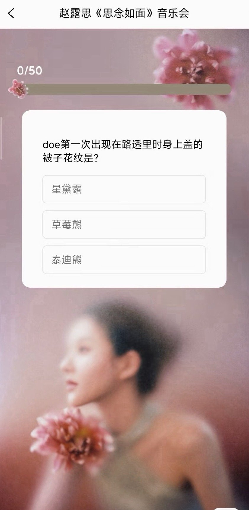 本来还以为赵露思生日免费请粉丝看演出很用心,结果一看题目两眼一黑[衰],要粉丝回答自己在某一场戏穿的什么颜色的外套、自己狗第一次出镜时身上盖的被子是什么花纹,甚至自己都没到80分,想让粉丝去黄牛那里买票可以直说,有一种干完这票就要跑路的疯感……