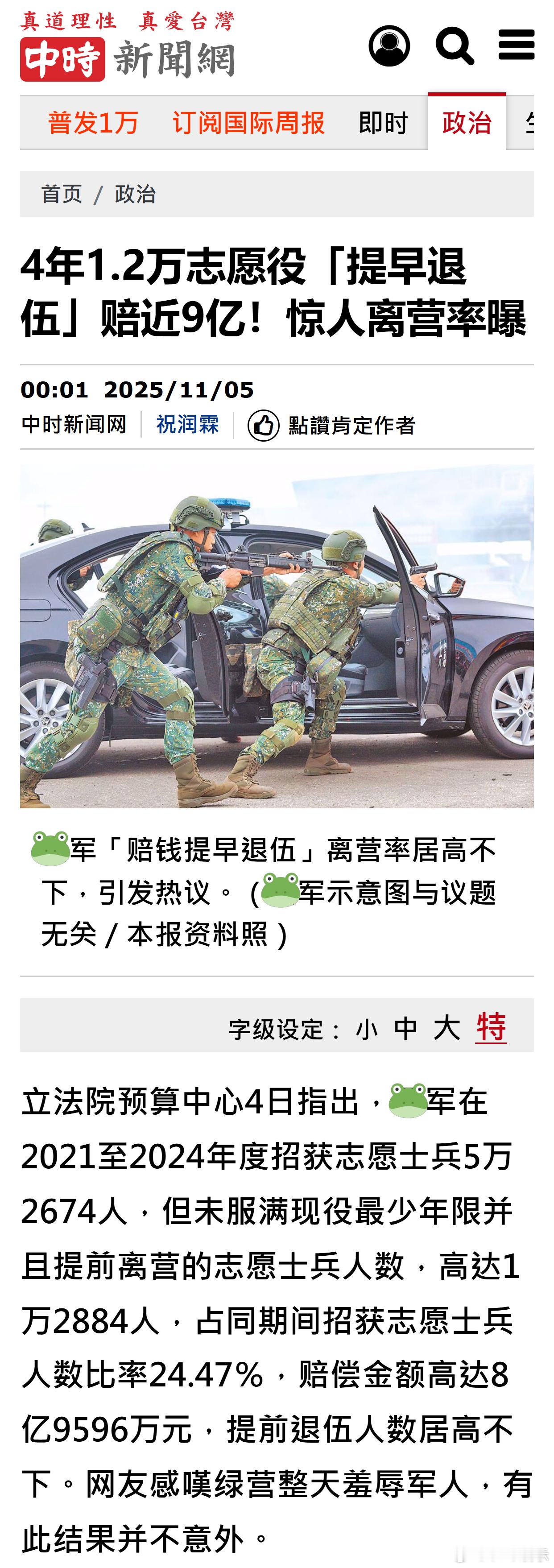 台军4年1.2万志愿役「赔钱提早退伍」,赔偿金额高达近9亿