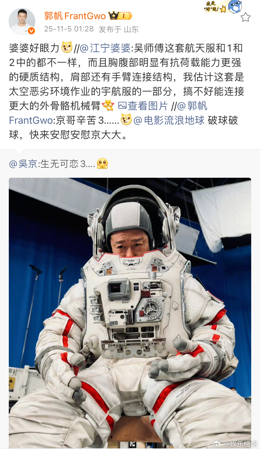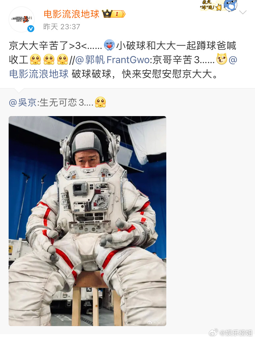 郭帆回复吴京京哥辛苦3《流浪地球3》郭帆回应吴京生无可恋3,郭帆回复吴京:京哥辛苦3,还喊话小破球安慰生无可恋的演员[期待]导演你好会,你们都辛苦啦~祝拍摄顺利!期待电影流浪地球3