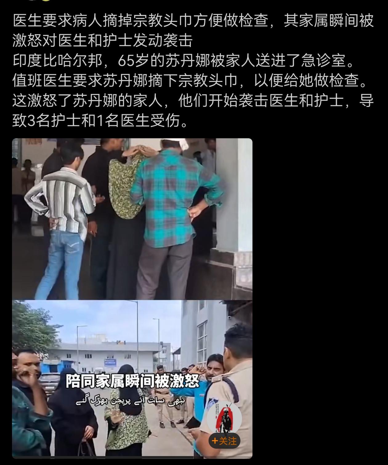 印度,医生要求病人摘掉宗教头巾方便做检查,其家属瞬间被激怒对医生和护士发动袭击!