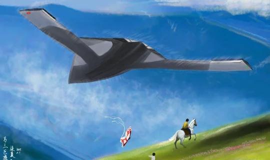 儿童放学归来早,忙趁东风放纸鸢 马兰巨鹰-马兰Y隐形远程无人轰炸机procreate板绘画画 procreate绘画 马兰开花二十一 无人机 轰20