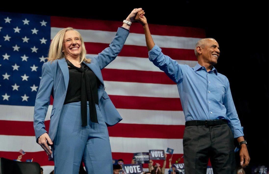 ‼️ 最新消息:前民主党众议员阿比盖尔·斯潘伯格在弗吉尼亚州州长竞选中击败了共和党副州长温索姆·厄尔-西尔斯,该州由红转蓝。