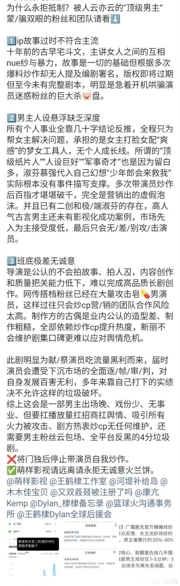 王鹤棣的大奉打更人已经证明他可以单抗大男主,没必要去演这种偏大女主的宅斗剧。男主在小说里的作用也就稍微大于大男主剧里镶边女主吧[允悲]没成长线,人设堆砌的再好也只是辅助、磕糖的工具。