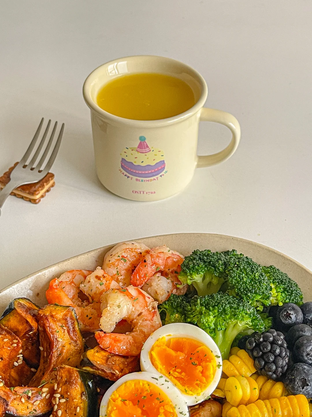 年后干净饮食🌽玉米虾仁糖心蛋拼盘🍤拿铁☕️