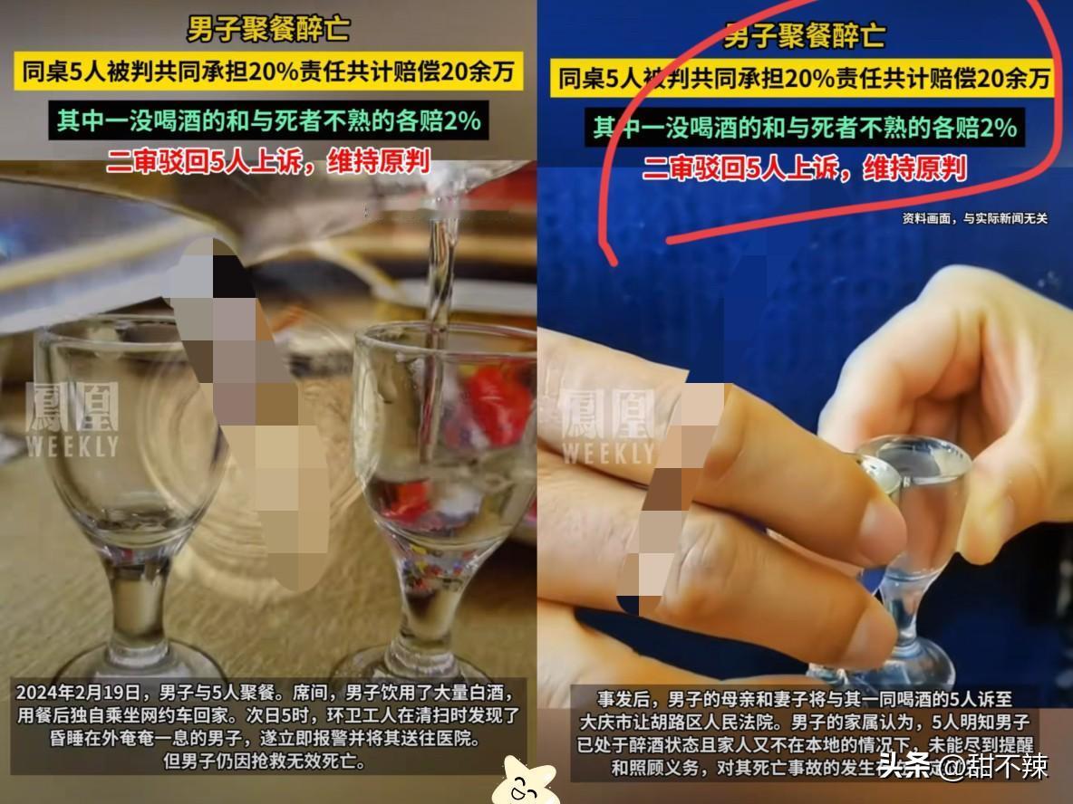 新疆,41岁的黄某某跟6个朋友聚餐,白酒加啤酒混着喝,喝到走路直打晃才散场,独自打车回小区。可谁能想到,他没能迈进门,第二天清晨就被发现冻僵在楼旁空地,生命永远停在了41岁! 父母悲痛欲绝,把同饮的7人全告上法庭索赔37万,法院的判决却字字戳心: 总损失113万多,黄某某自身担8成责任,召集人没确认安全赔6%,目睹醉态不援手的各赔4%,其余同饮者各赔2%,没喝酒的接送者无责,精神抚慰金一分不给! 这哪是“喝多了出意外”,分明是酒局上的责任缺位!酒桌从不是免责地,劝酒、灌酒还不管人安全到家,出事就得掏钱包买单!