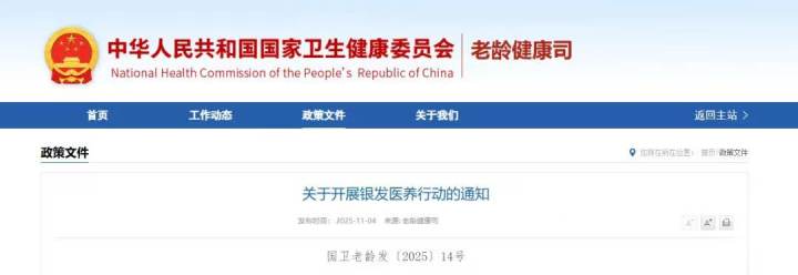 近日,国家五部门联合推出“银发医养行动”,鼓励身体健康的退休医务人员,走进养老机构、社区或家庭,为老年人提供诊疗、护理、康复、健康管理等服务。