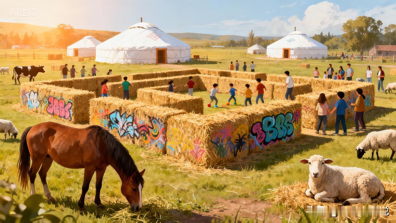 内蒙古创意文旅成新宠,牧草捆进行涂鸦装扮、设置草垛迷宫,唤醒资源的生命力,成为文