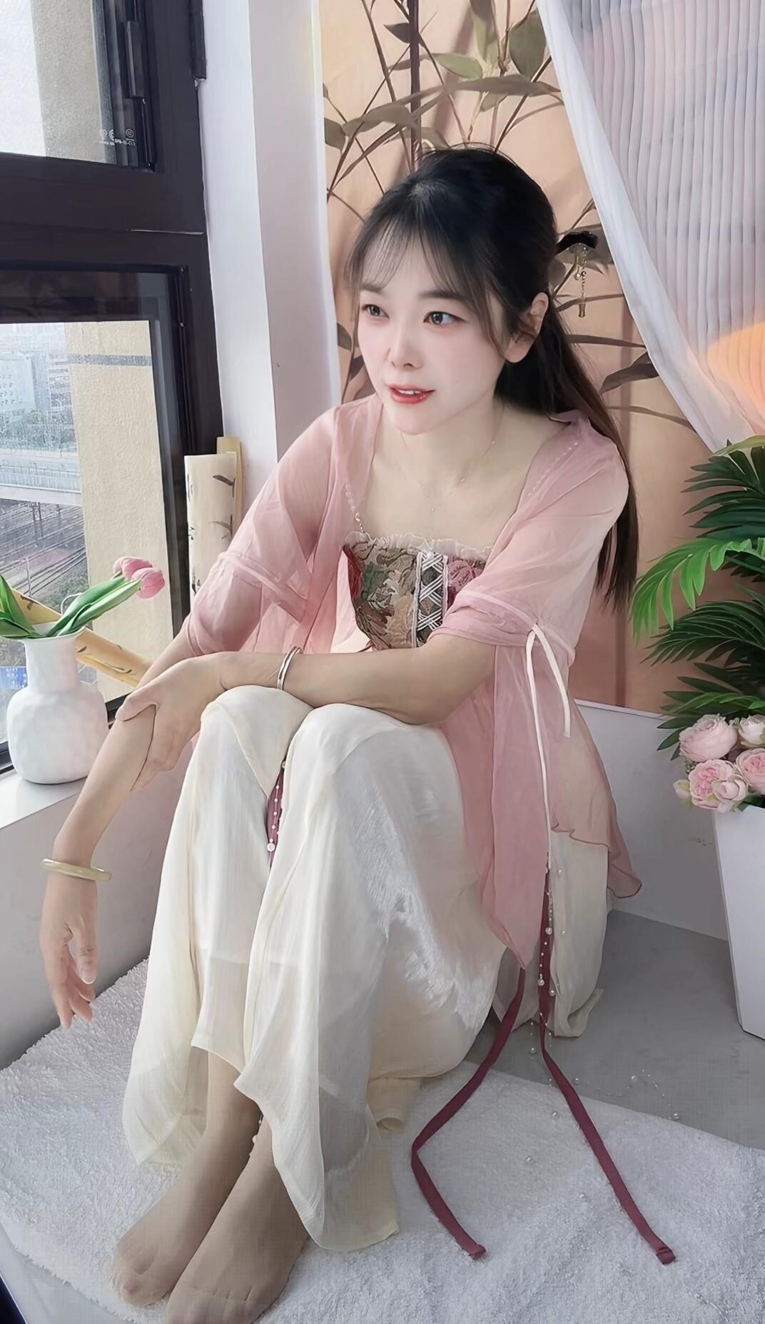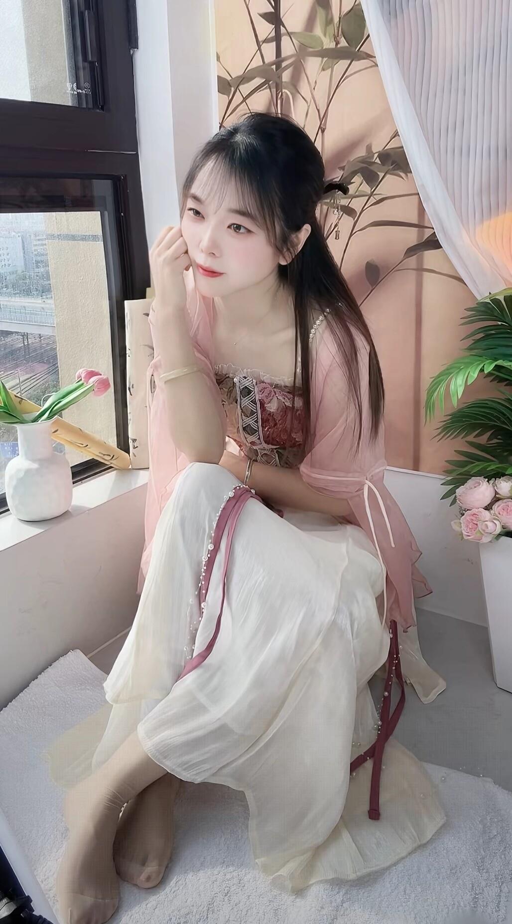 窗前人影动,轻纱拂春风。